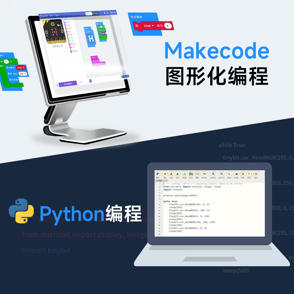 📚 Microbit智能小车套件图形化编程教育AI视觉wifi视频机器人python