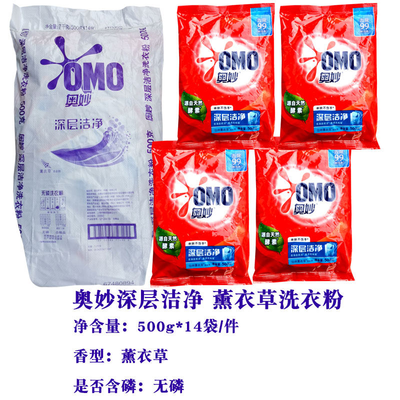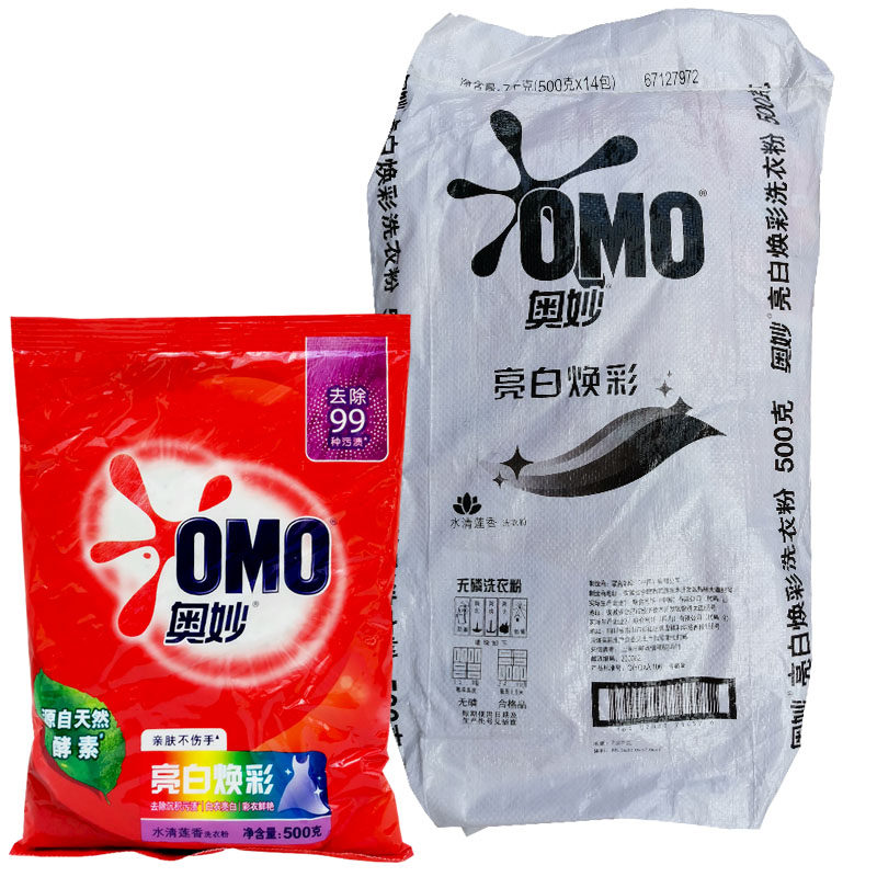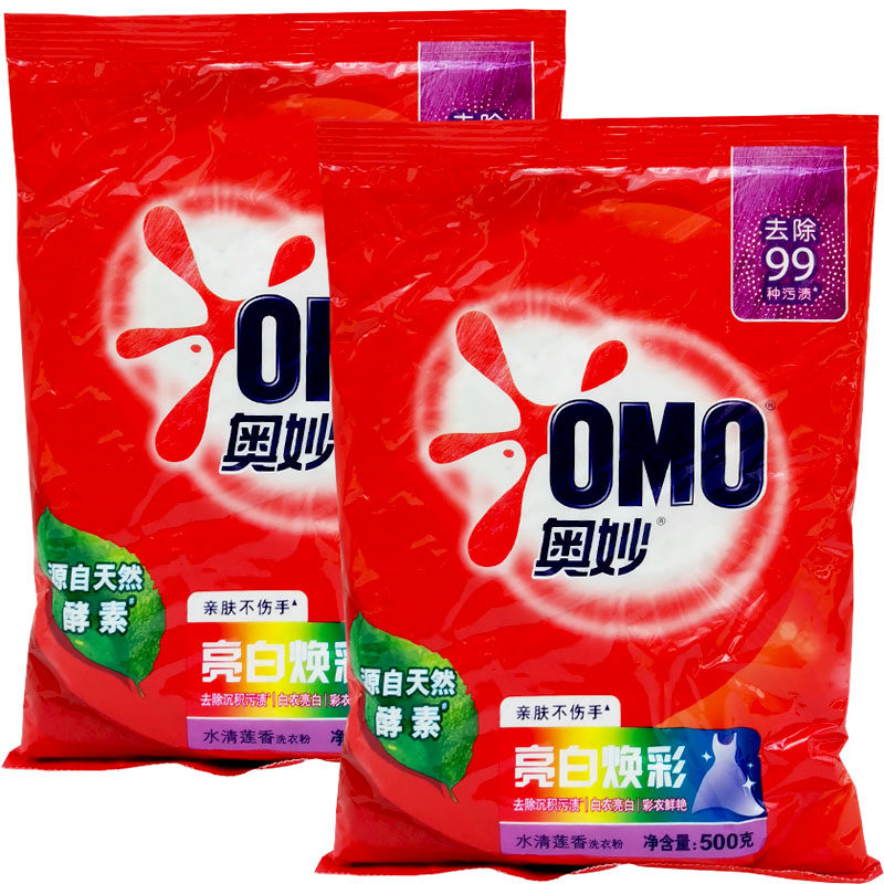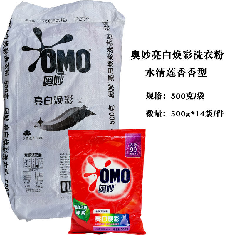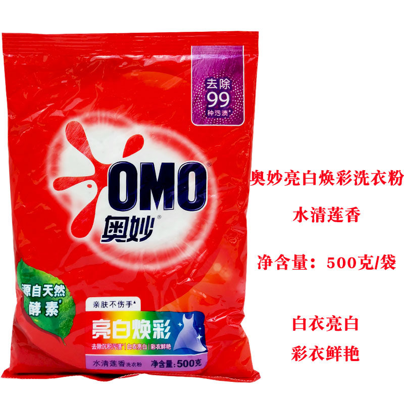 📚 奥妙洗衣粉500g亮白焕彩酵素洗衣粉500克*14包家用实惠装水清莲香