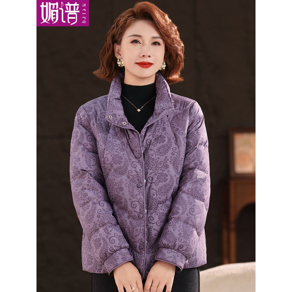 📚 妈妈冬装碎花短款羽绒服2025新款保暖婆婆上衣中老年女士冬季外套