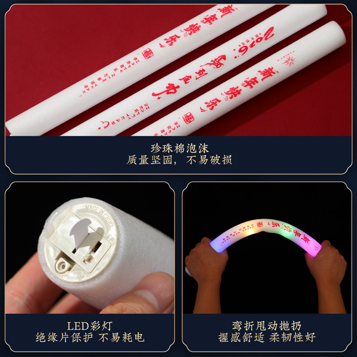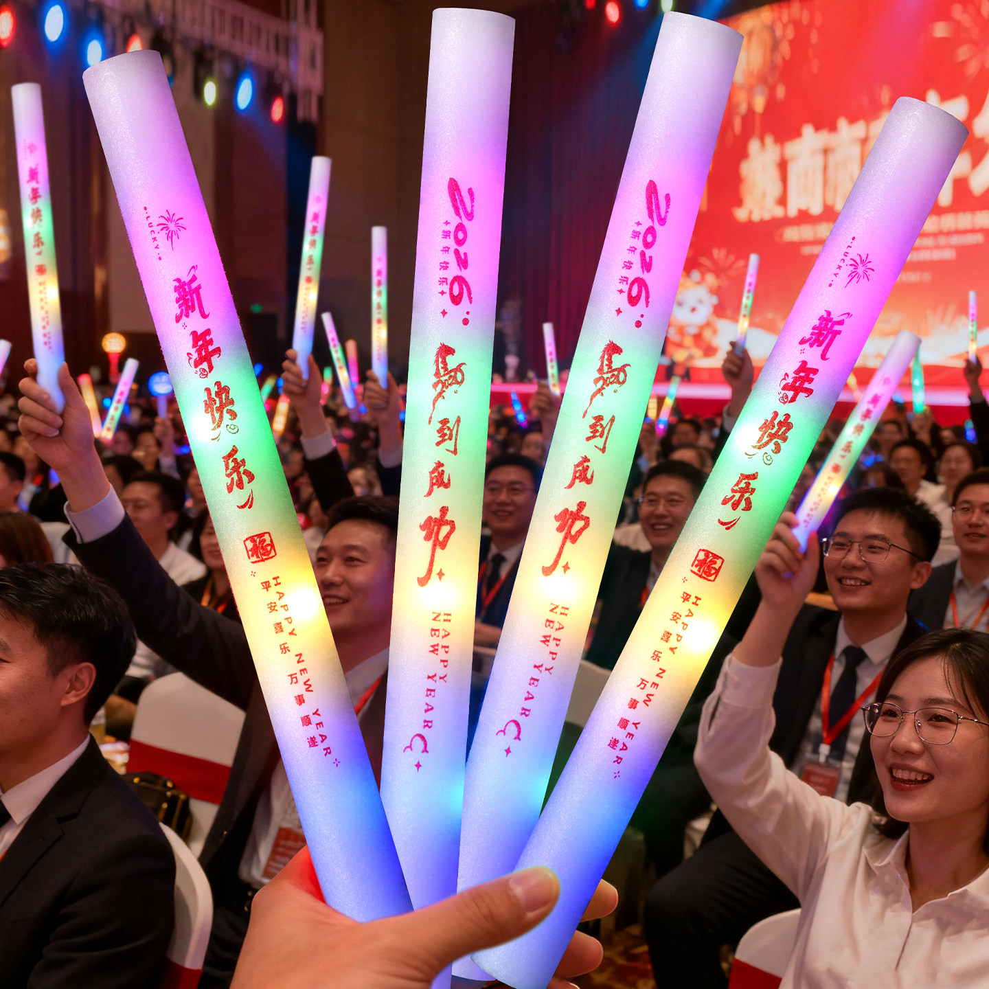 📚 新年快乐手持荧光棒2026马年过年商场公司跨年会气氛布置拍照道具