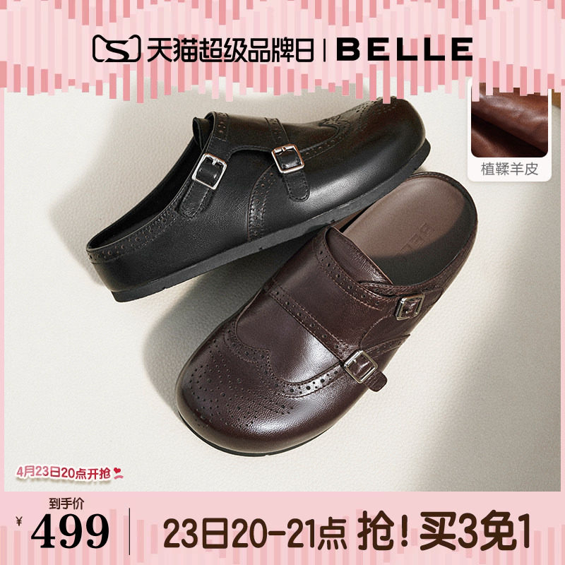 📚 百丽羊皮布洛克勃肯鞋女2026布洛克孟克软底可外穿包头半拖F6X1