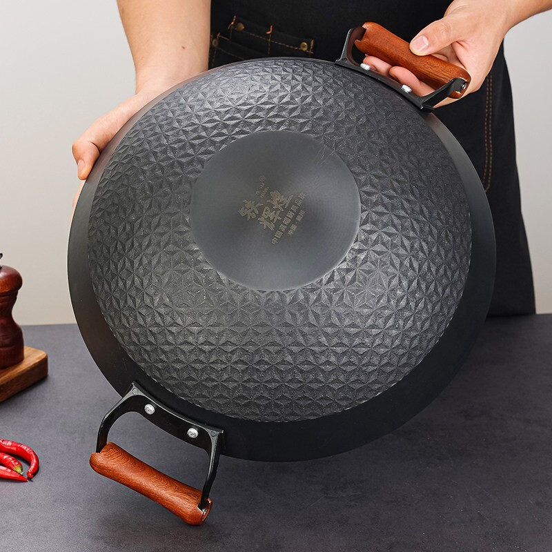 📚 菱形防滑陆川生铁铸铁锅不粘不锈无涂层双耳圆底炒菜锅燃气灶适用