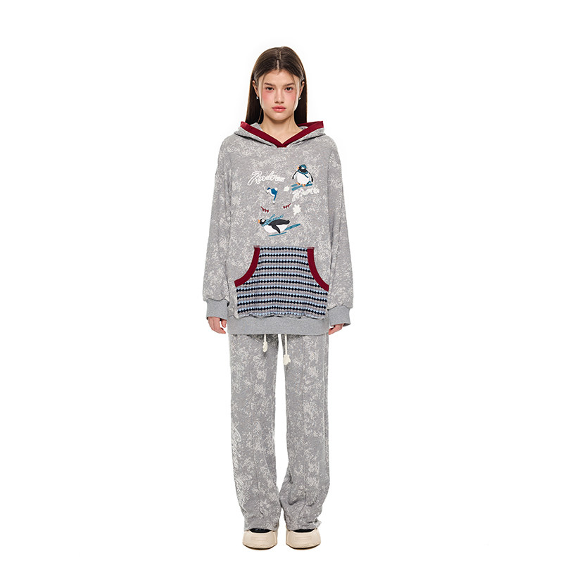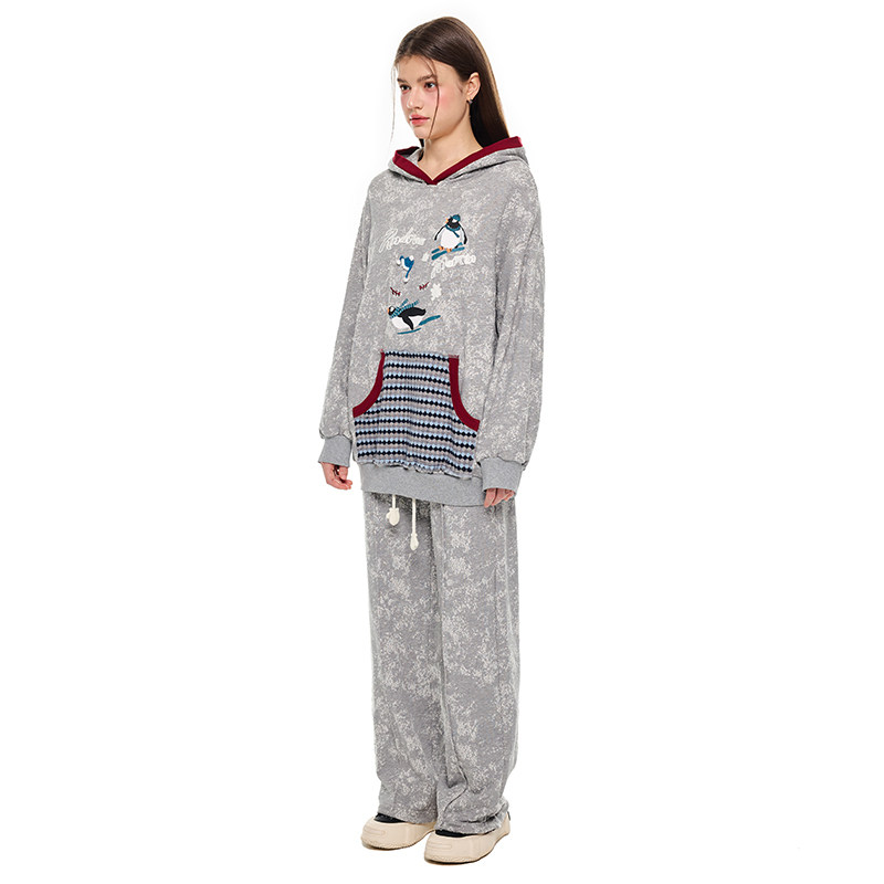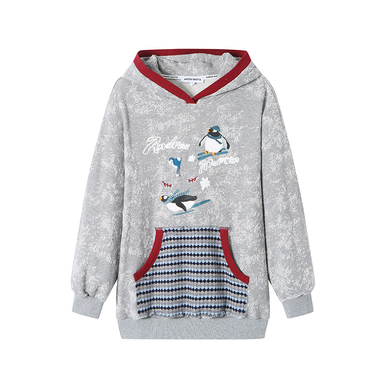 📚 【李雪琴同款】ANDREA MARTIN秋新款长绒棉企鹅印花卫衣套装