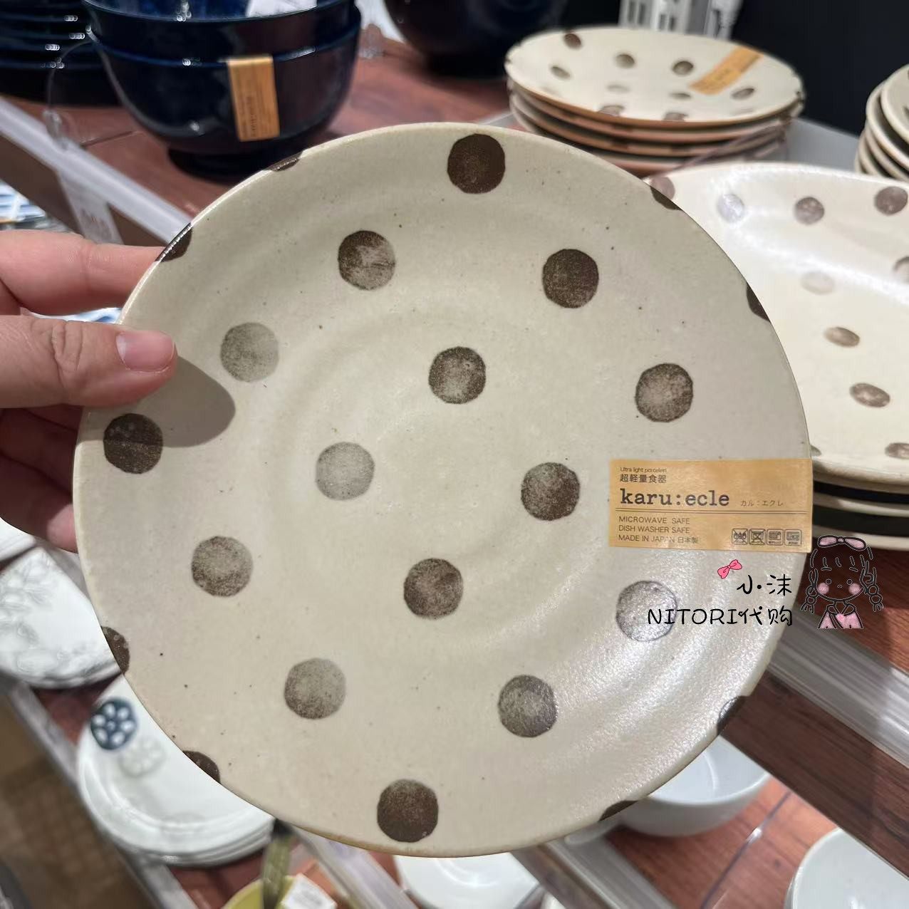 📚 NITORI宜得利 超轻量缤纷波点系列陶瓷小蝶小杯小碗面碗大盘深盘