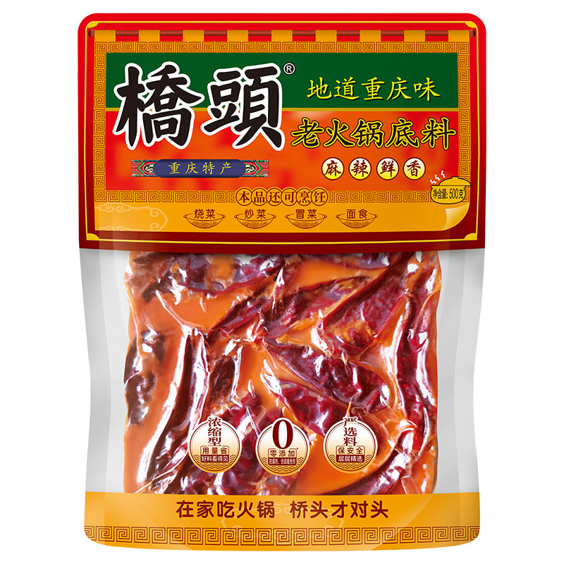 📚 桥头重庆牛油老火锅底料500g*8袋干锅四川串串麻辣烫红油调料家用