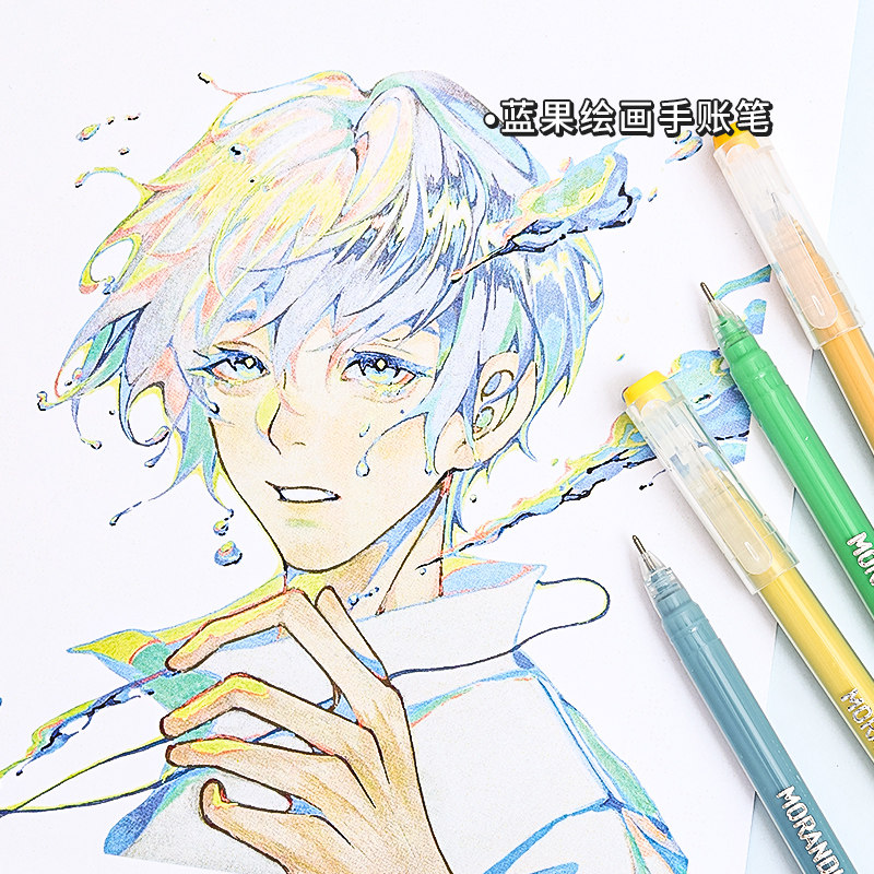 📚 蓝果手账丙烯笔莫兰迪色系高光笔闪粉顺滑大容量针管型中性笔学生做笔记用彩色笔套装重点标记号笔多色绘画笔