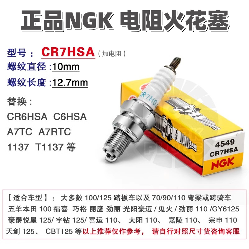 📚 适用SYM厦杏三阳XS125T-16A-16B-16C 飞度3/4 火花塞CR7HSA带电阻