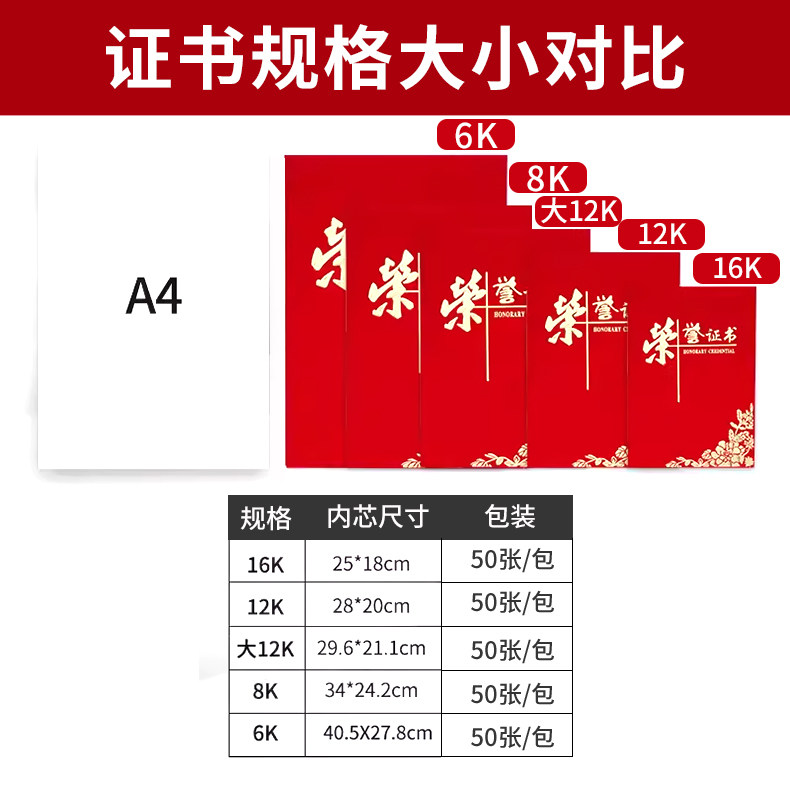 📚 包邮8K12K16K荣誉证书内芯同款有 聘书 内页纸空白可打印定做制作