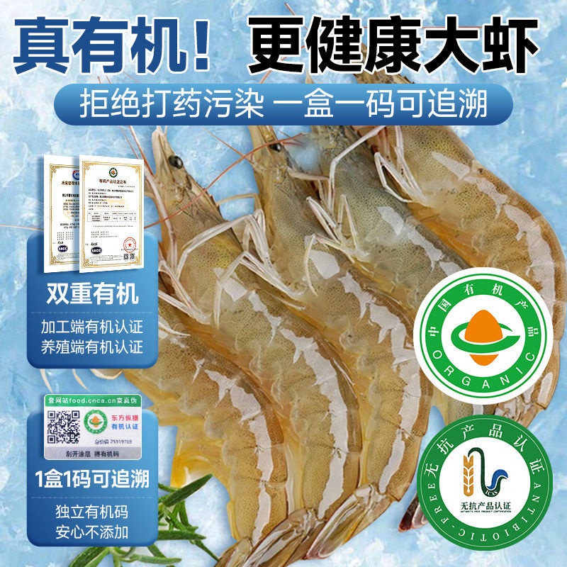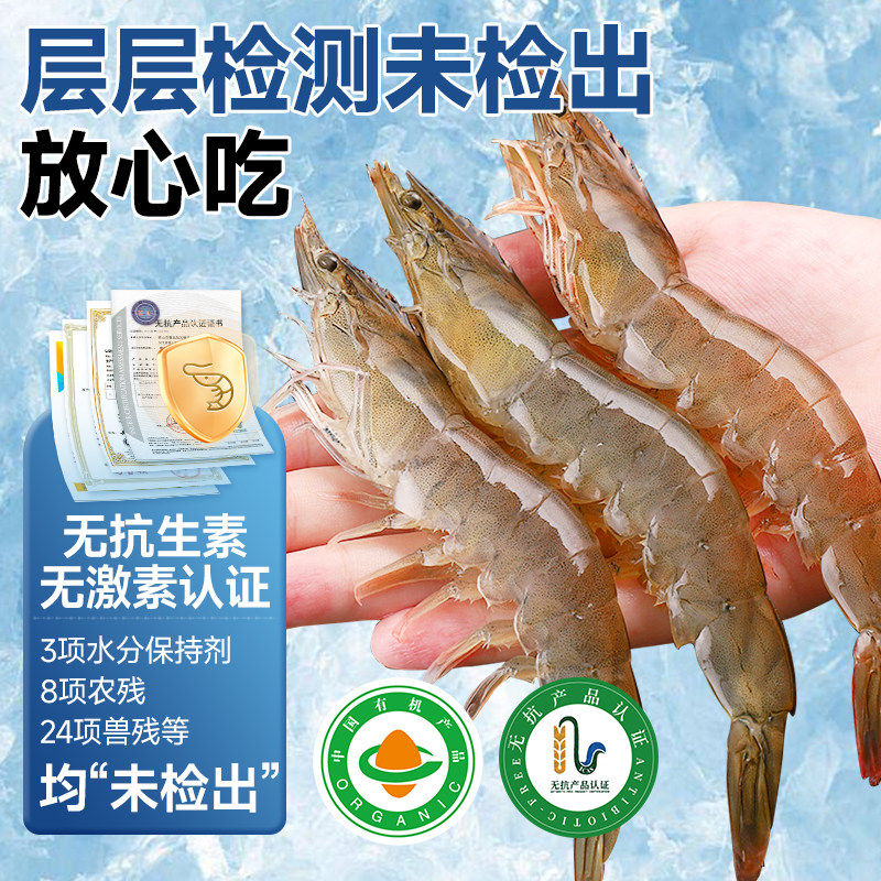 📚 有机无抗盐田大虾真有机活虾盐冻鲜虾新鲜冷冻白虾生冻速冻纯天然