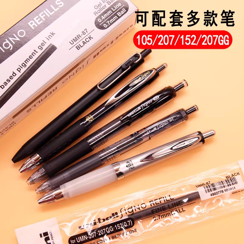 📚 UNI三菱中性笔0.7笔芯黑色按动笔替芯UMN-207GG原装替换芯UMR-87中性笔芯0.7mm顺滑水笔芯UMN105/207/152通用