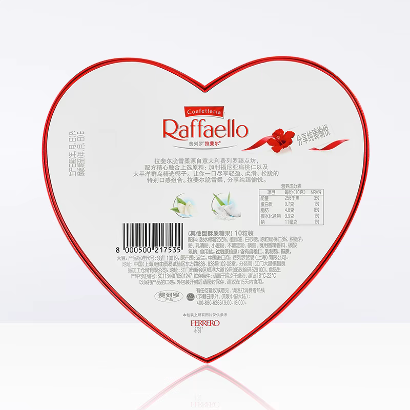 📚 费列罗拉斐尔脆雪柔椰蓉球白巧克力10粒爱心礼盒雪莎喜糖年货礼物