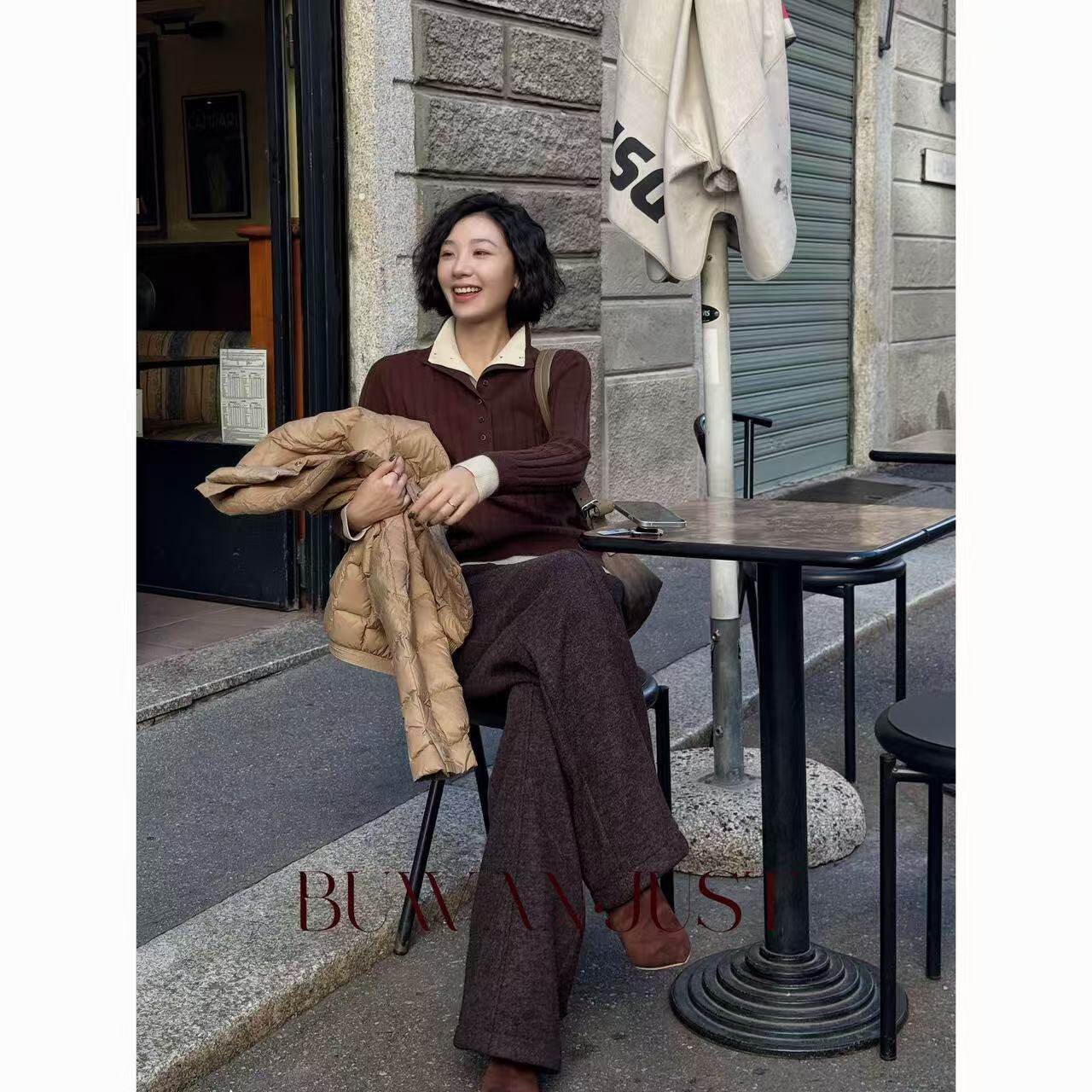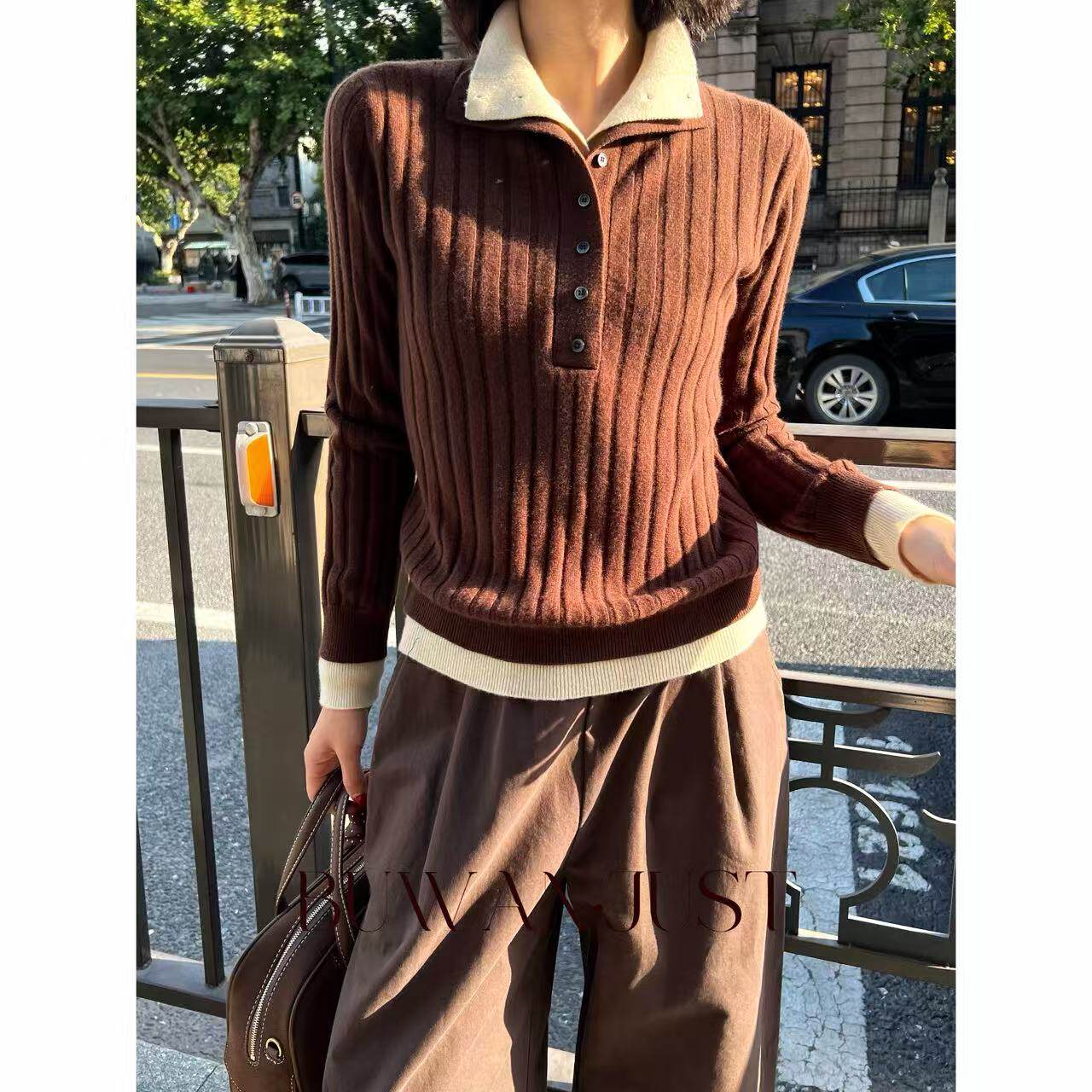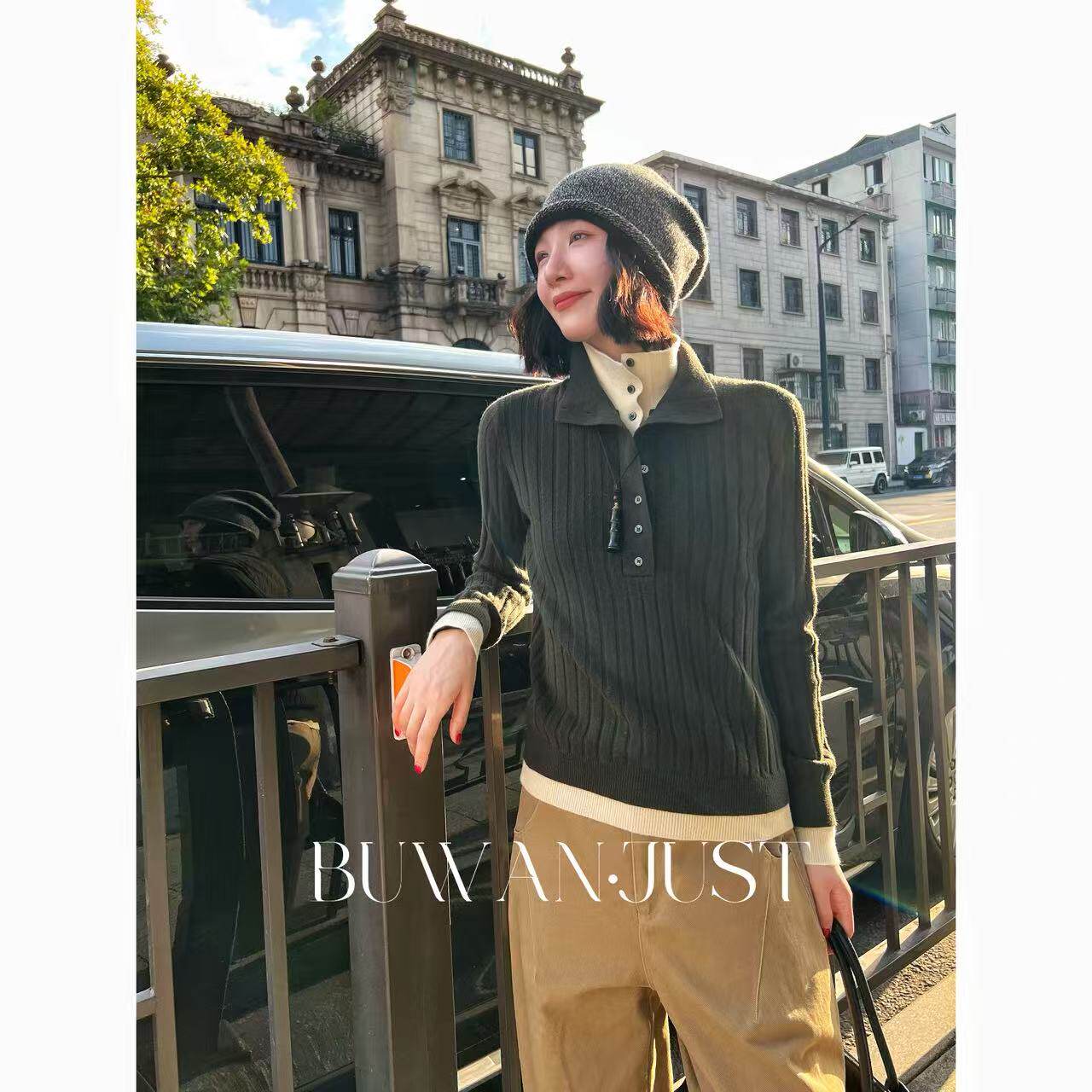 📚 不晚BUWANJUST【来日方长】高品假两件设计感满分绵羊毛毛衣B128