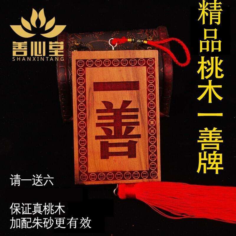 📚 天然桃木一善牌朱砂一善挂件用品挂牌门对门挂饰居家可