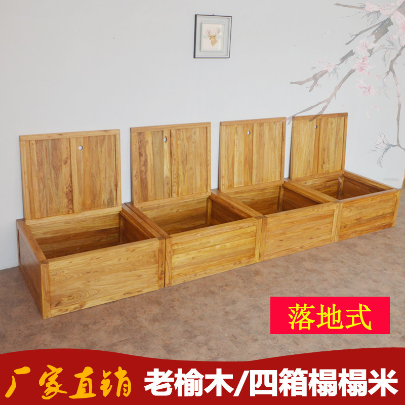 📚 老榆木储物榻榻米箱无床头纯实木高箱子拼床组合单人床直销可定制