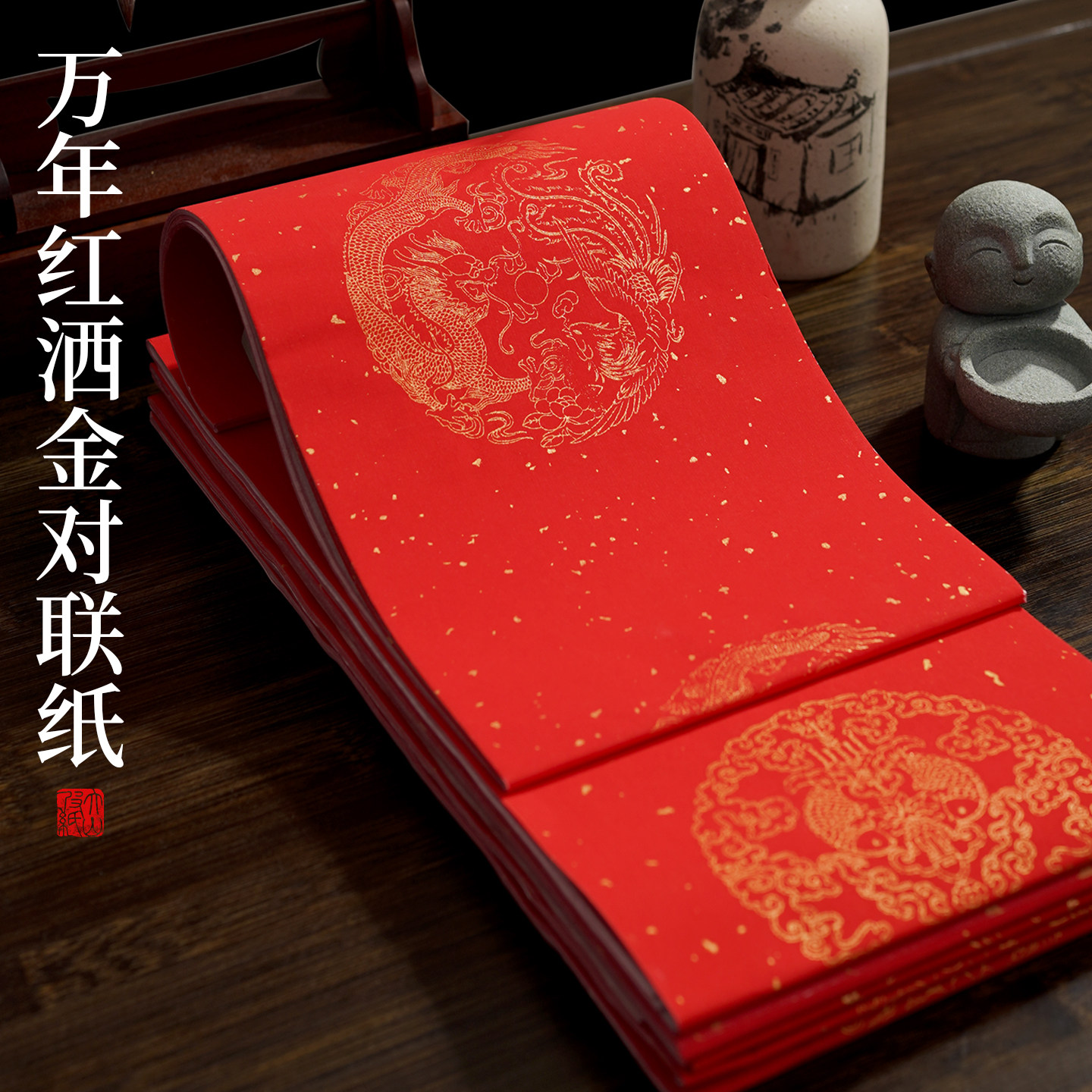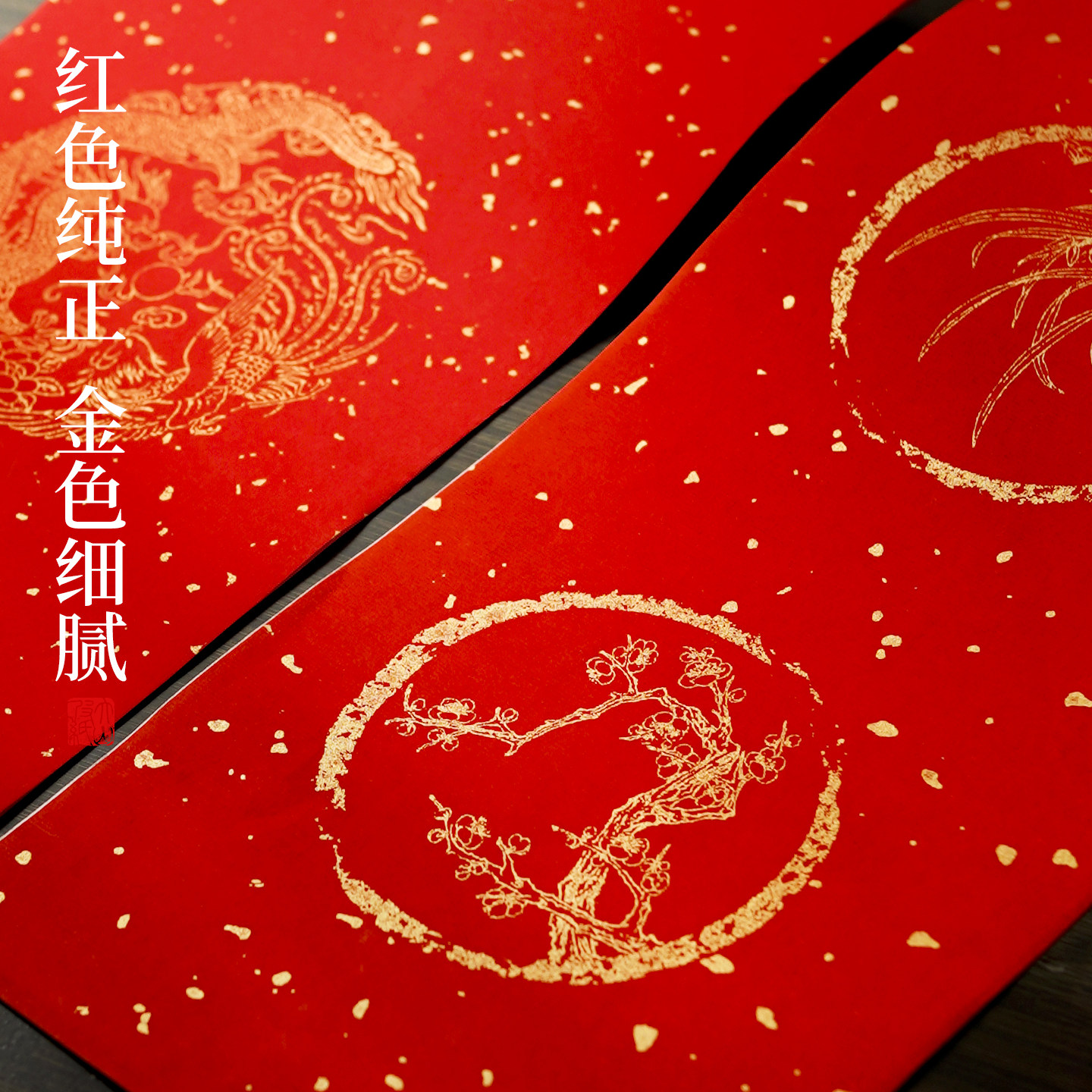 📚 万年红对联专用纸批发春联纸空白手写春节专用洒金红纸蜡染书画纸龙凤七言瓦当新年婚庆乔迁福字斗方对联批发