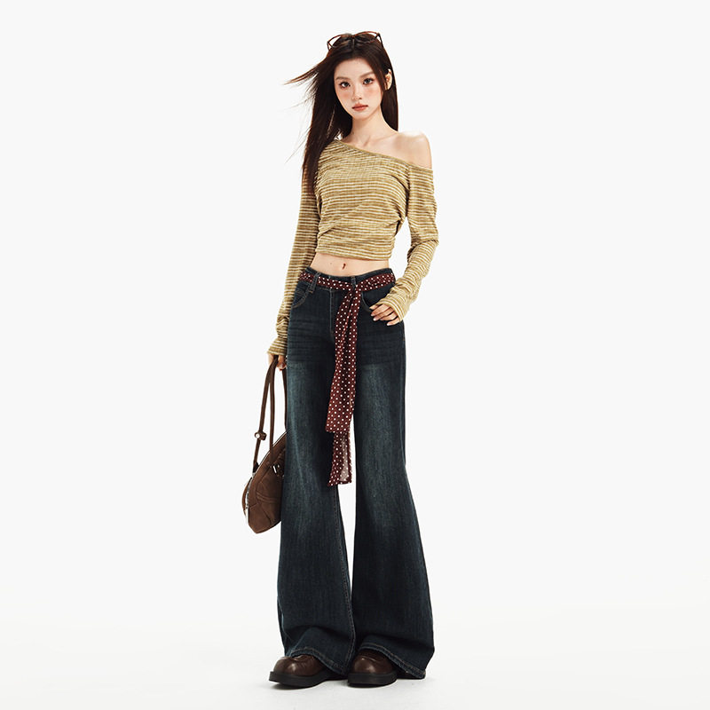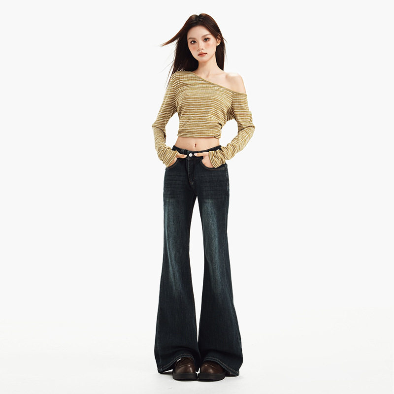 📚 美式复古高腰喇叭牛仔裤女秋冬修身显瘦垂感长裤