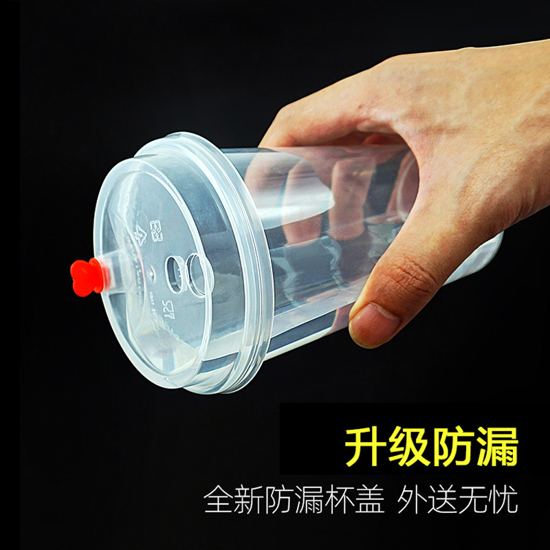 📚 90口径奶茶杯子一次性注塑杯500透明磨砂杯带盖商用700ml定制logo