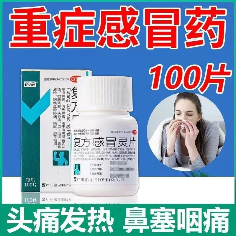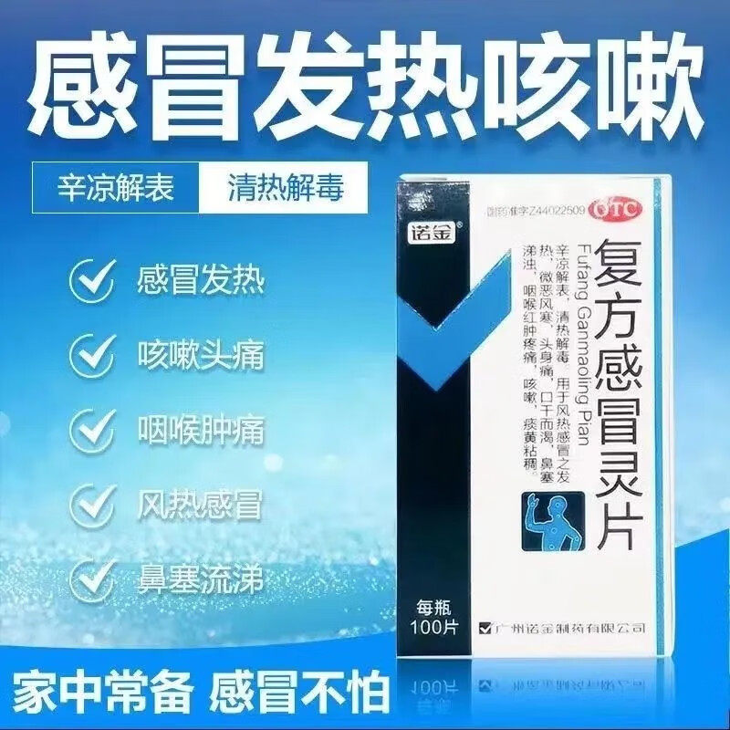 📚 诺金复方感冒灵片100片风热感冒咳嗽发热头身痛口干鼻塞咽喉红肿