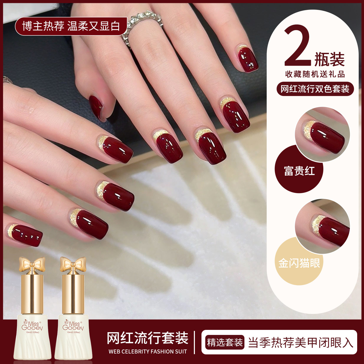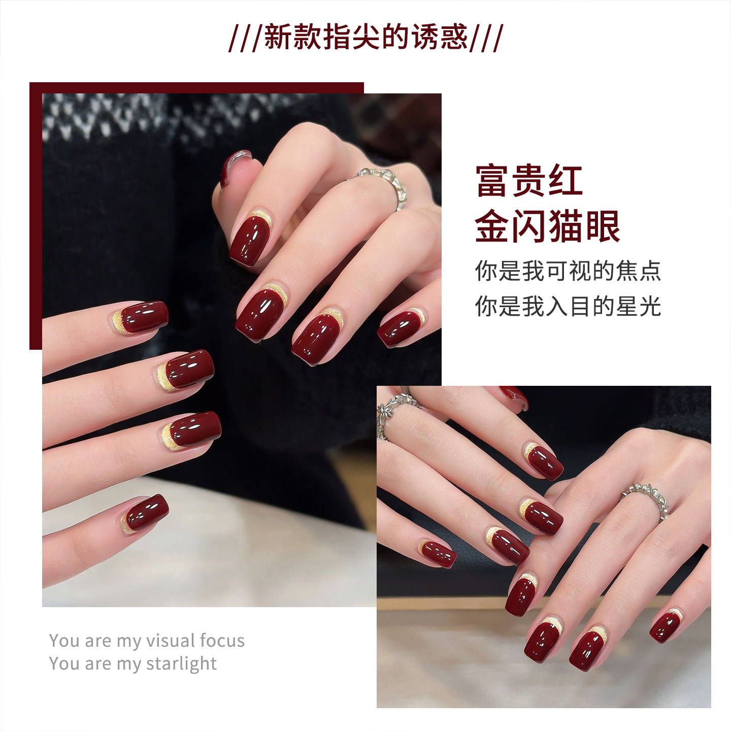 📚 秋冬富贵红色指甲油胶2026年新款显白金色爆闪猫眼套装美甲店专用