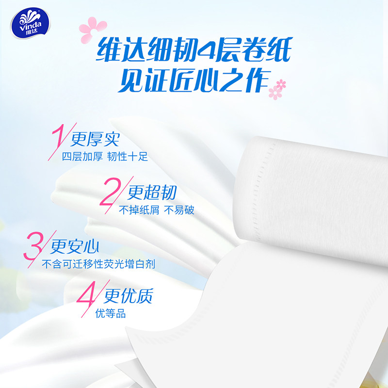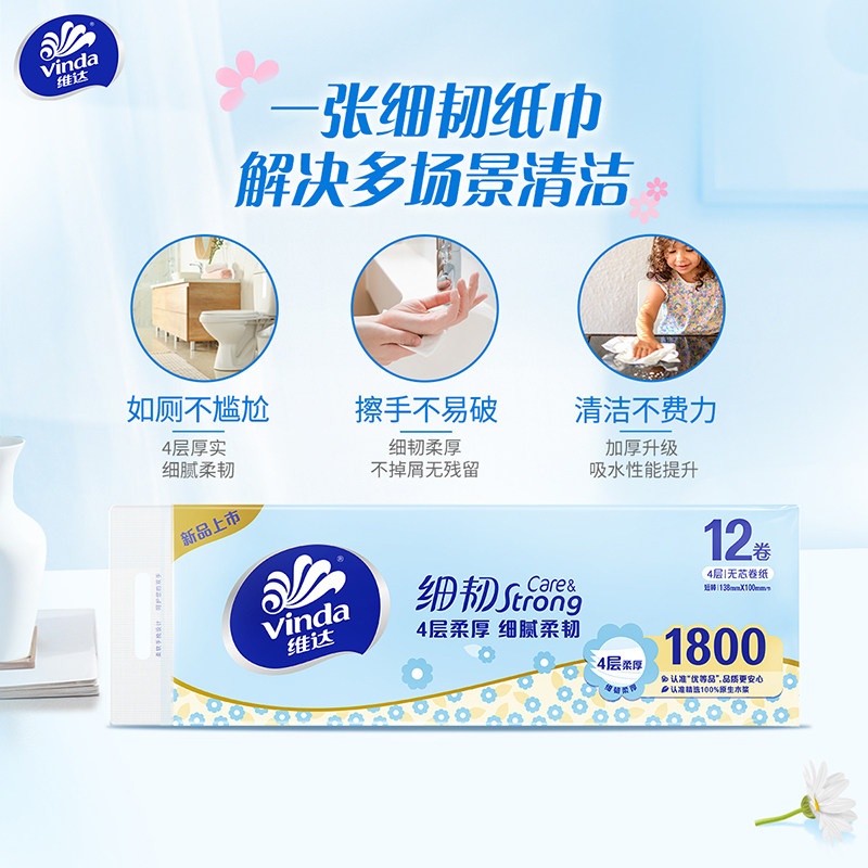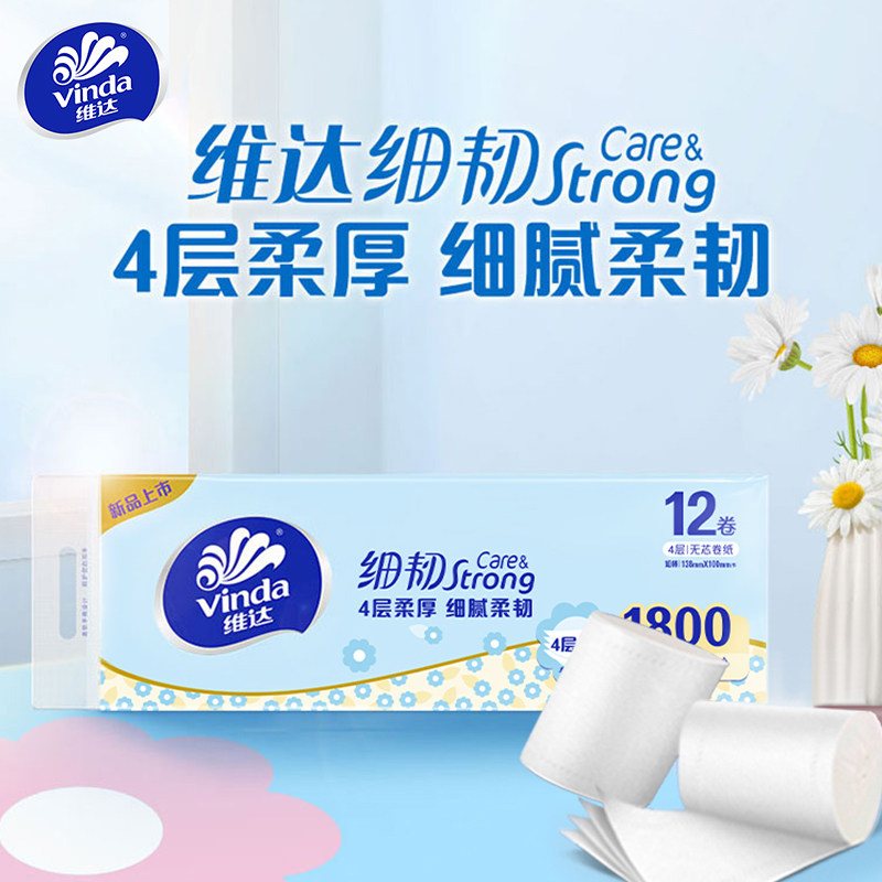 📚 维达卷纸细韧无芯4层卷筒纸提装卫生纸擦手用家用厕纸手纸实惠装