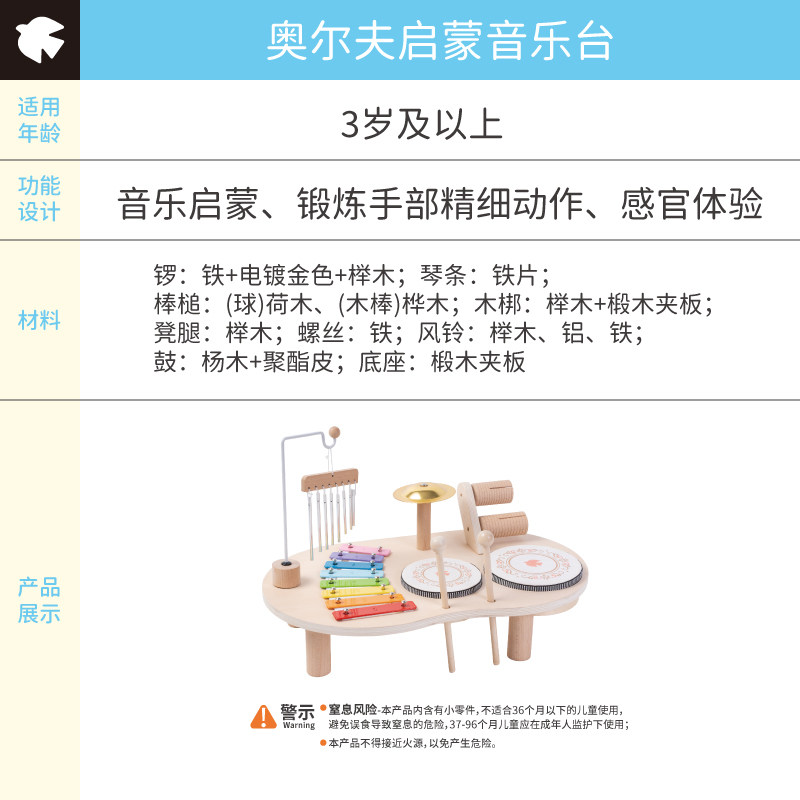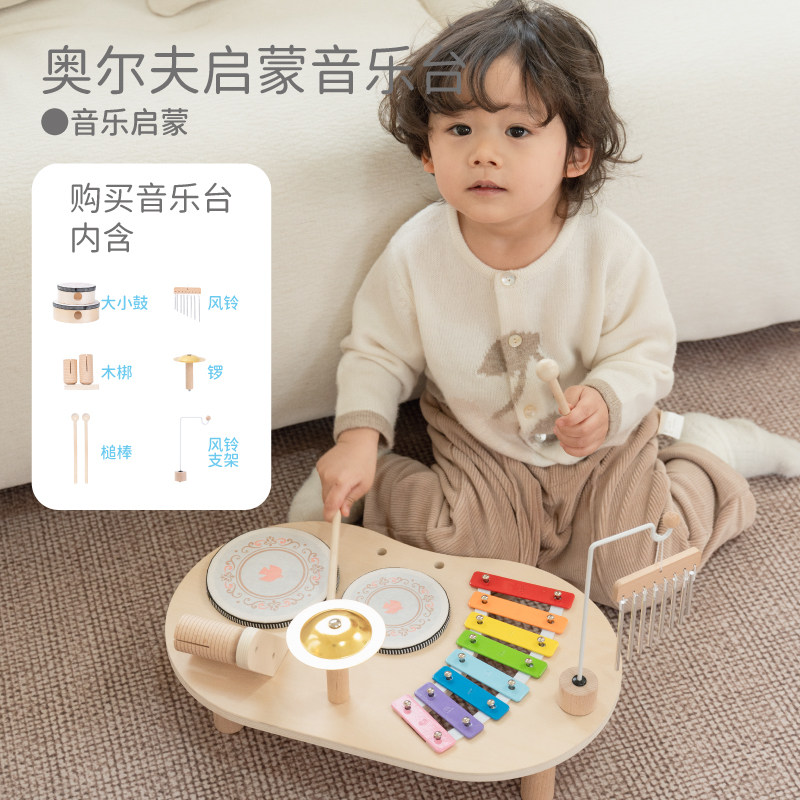 📚 Springbuds木质架子鼓音乐启蒙多功能音乐台男女儿童早教益智玩具