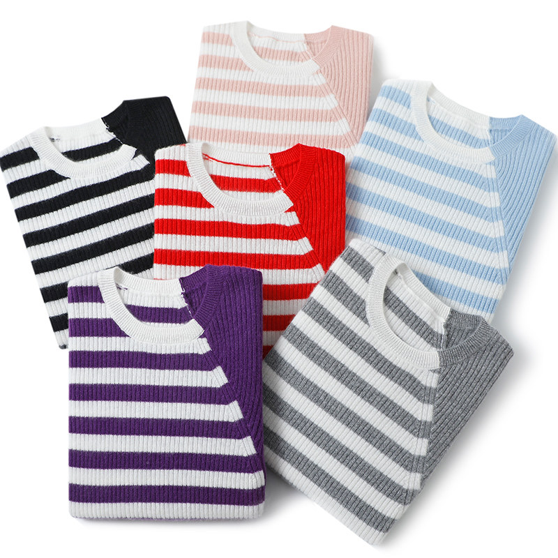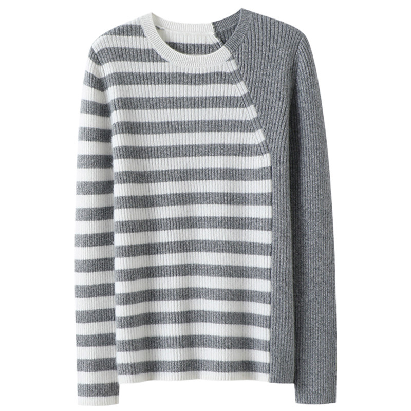 📚 偏爱启超~告别廉价感!圆领条纹羊绒衫女100纯羊绒毛衣针织打底衫