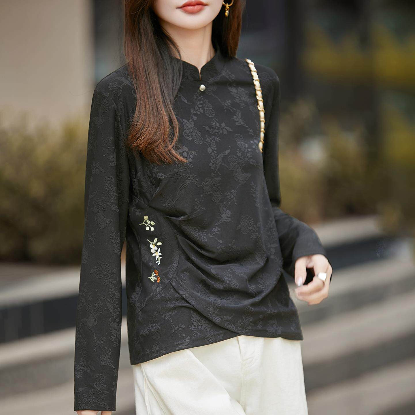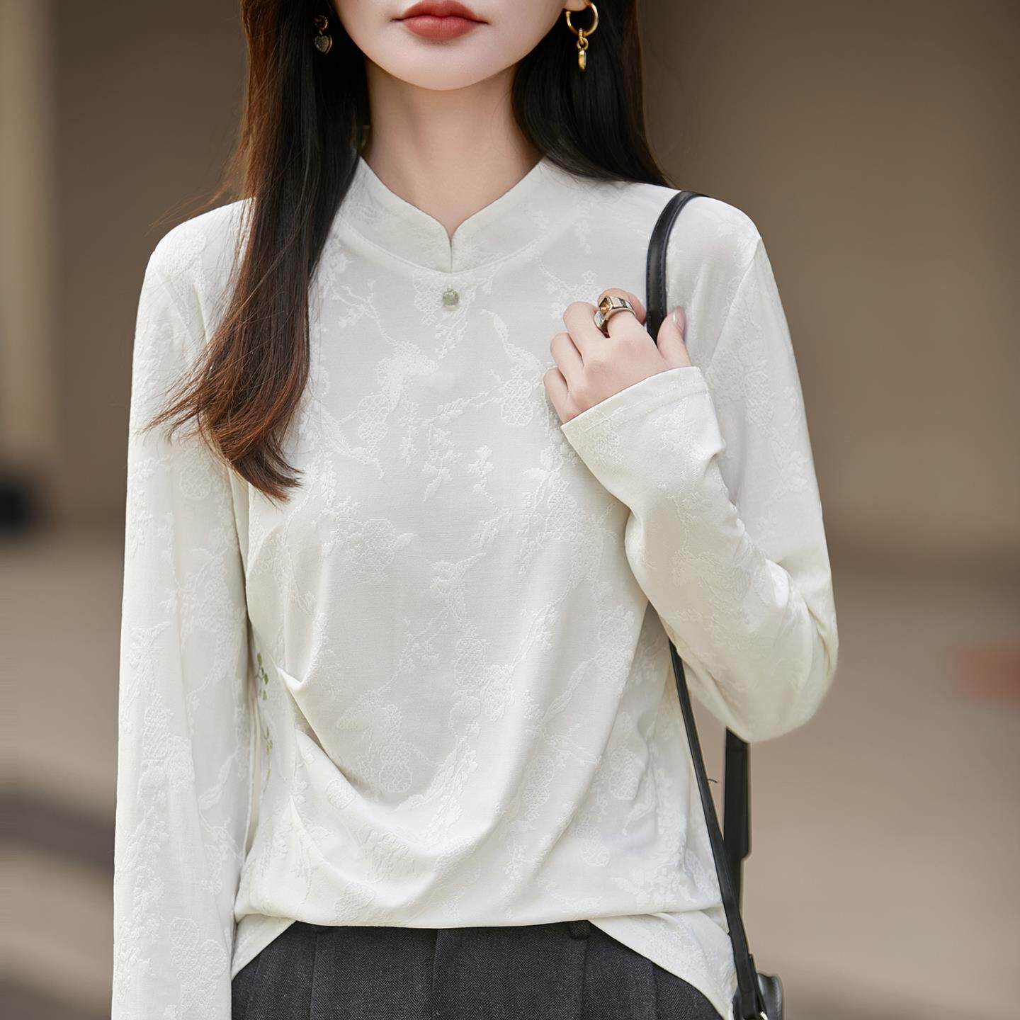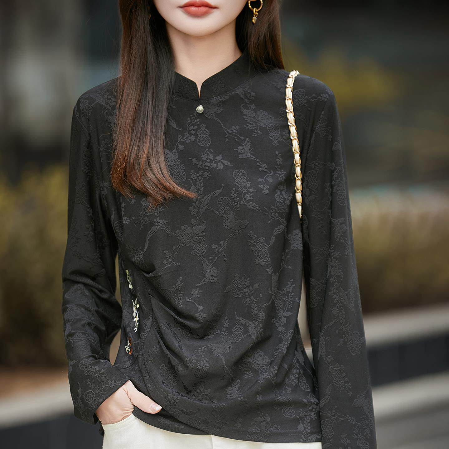 📚 新中式打底衫t恤女26秋冬新款复古盘口国风内搭针织刺绣纯色上衣