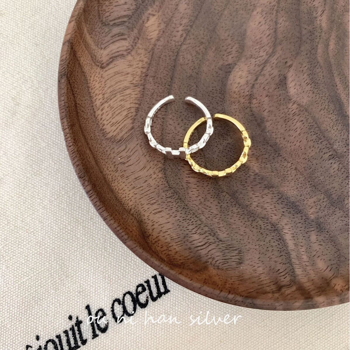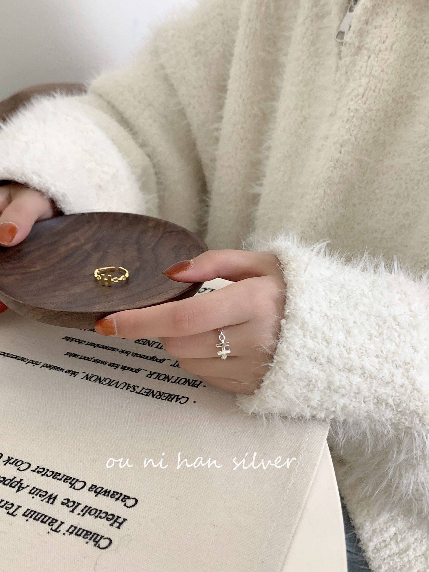 📚 韩国S925纯银爱马家黄金色H字母开口戒指女ins风小众设计食指环饰