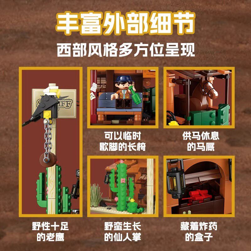 📚 未及积木拾光小镇系列西部酒馆积木拼装玩具模型摆件生日礼物