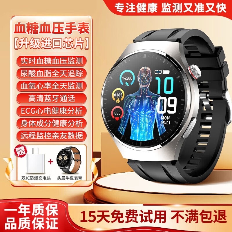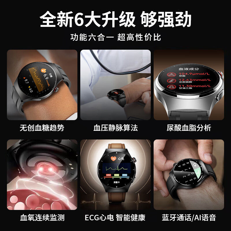 📚 无创测血糖尿酸血脂智能手表高精准度心电图血氧心率血压监测量仪老人健康手环蓝牙通话NFC门禁