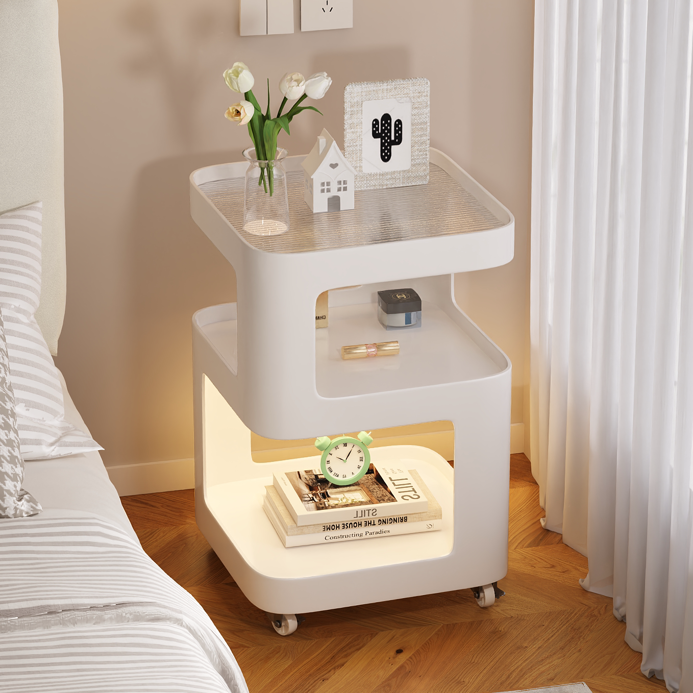 📚 三梦小型床头柜简约现代家用卧室可移动铁艺带灯置物架替代品边几