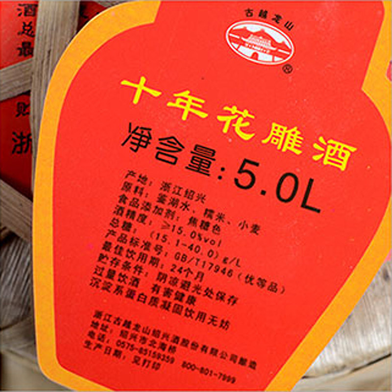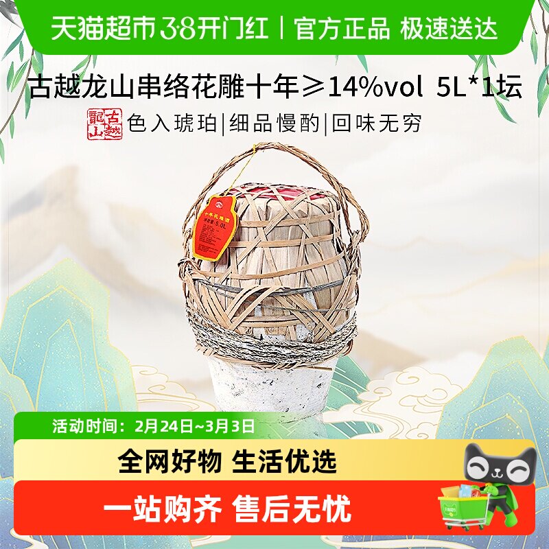 📚 【坛装】古越龙山串络花雕十年传统半干型5L*1大坛装绍兴黄酒