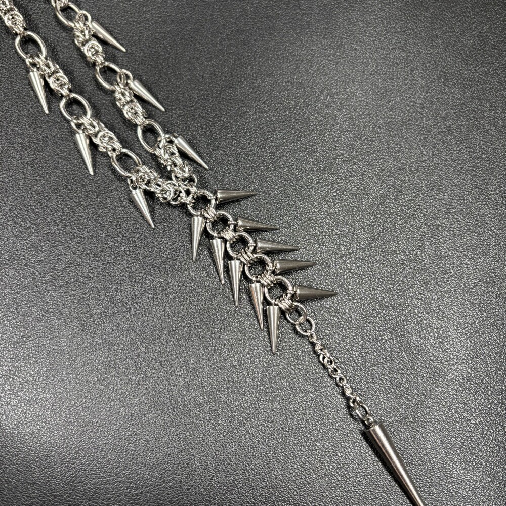 📚 原创小众设计感铆钉长款流苏项链男女个性夸张重工亚比配饰ins