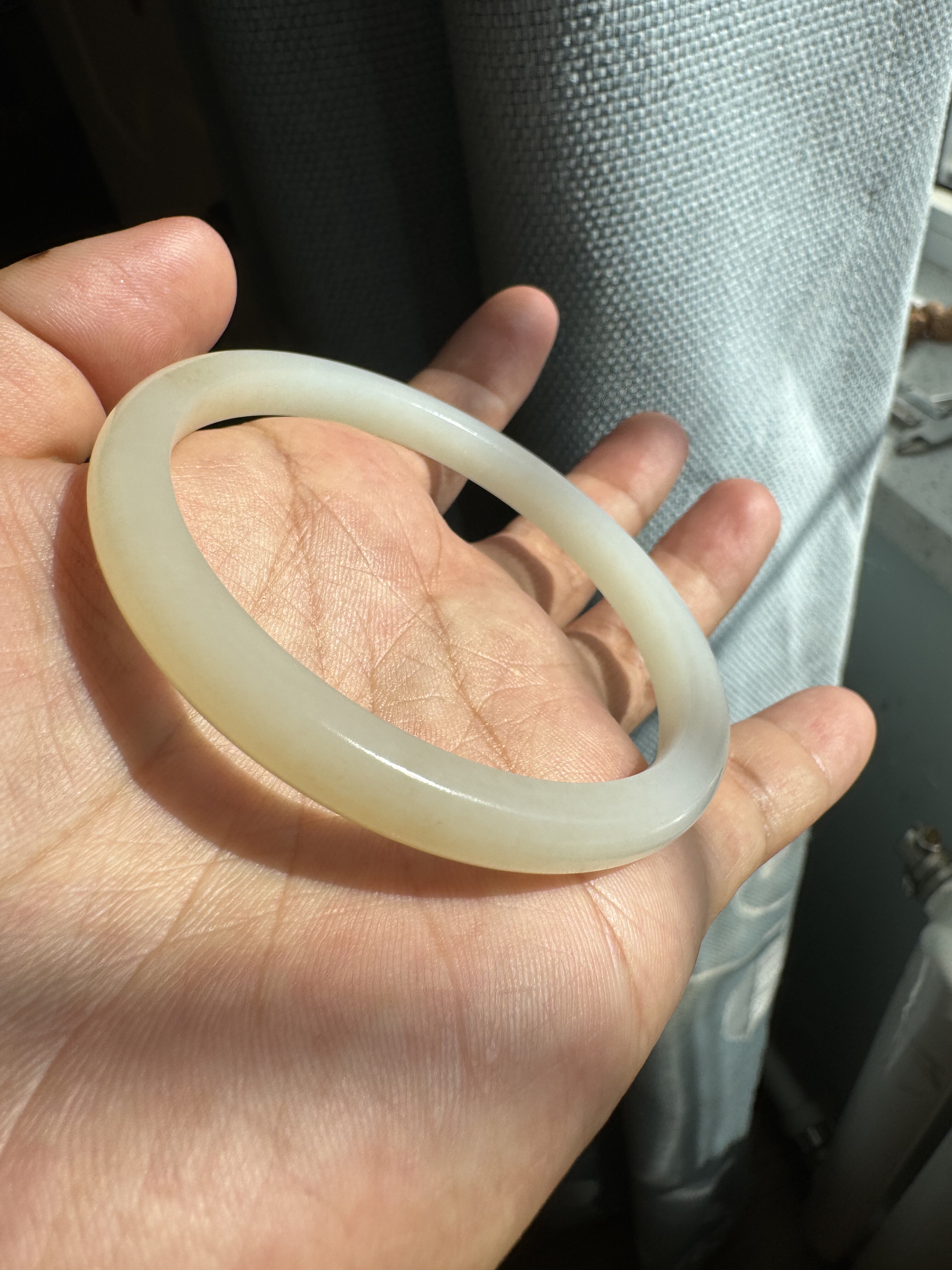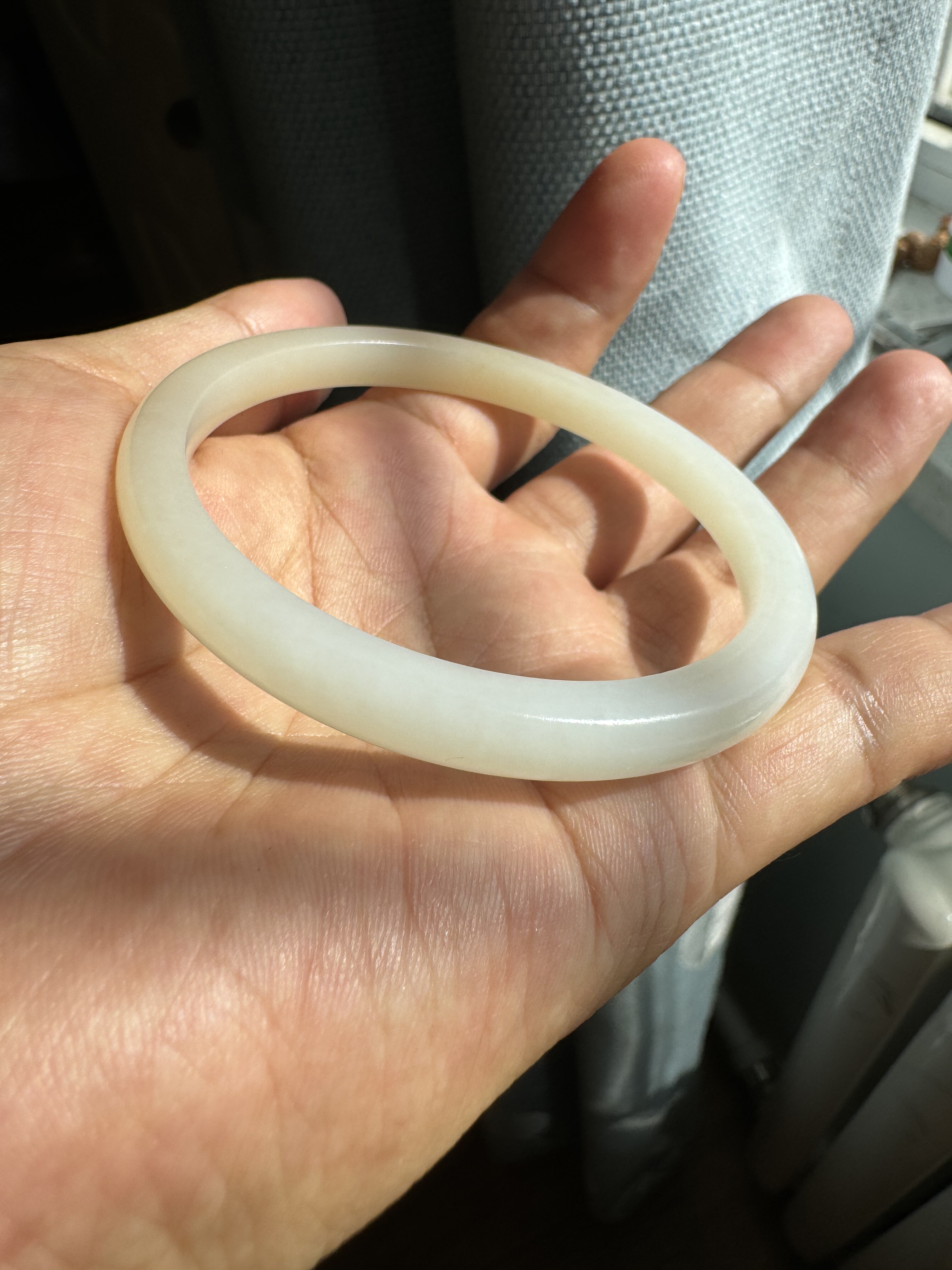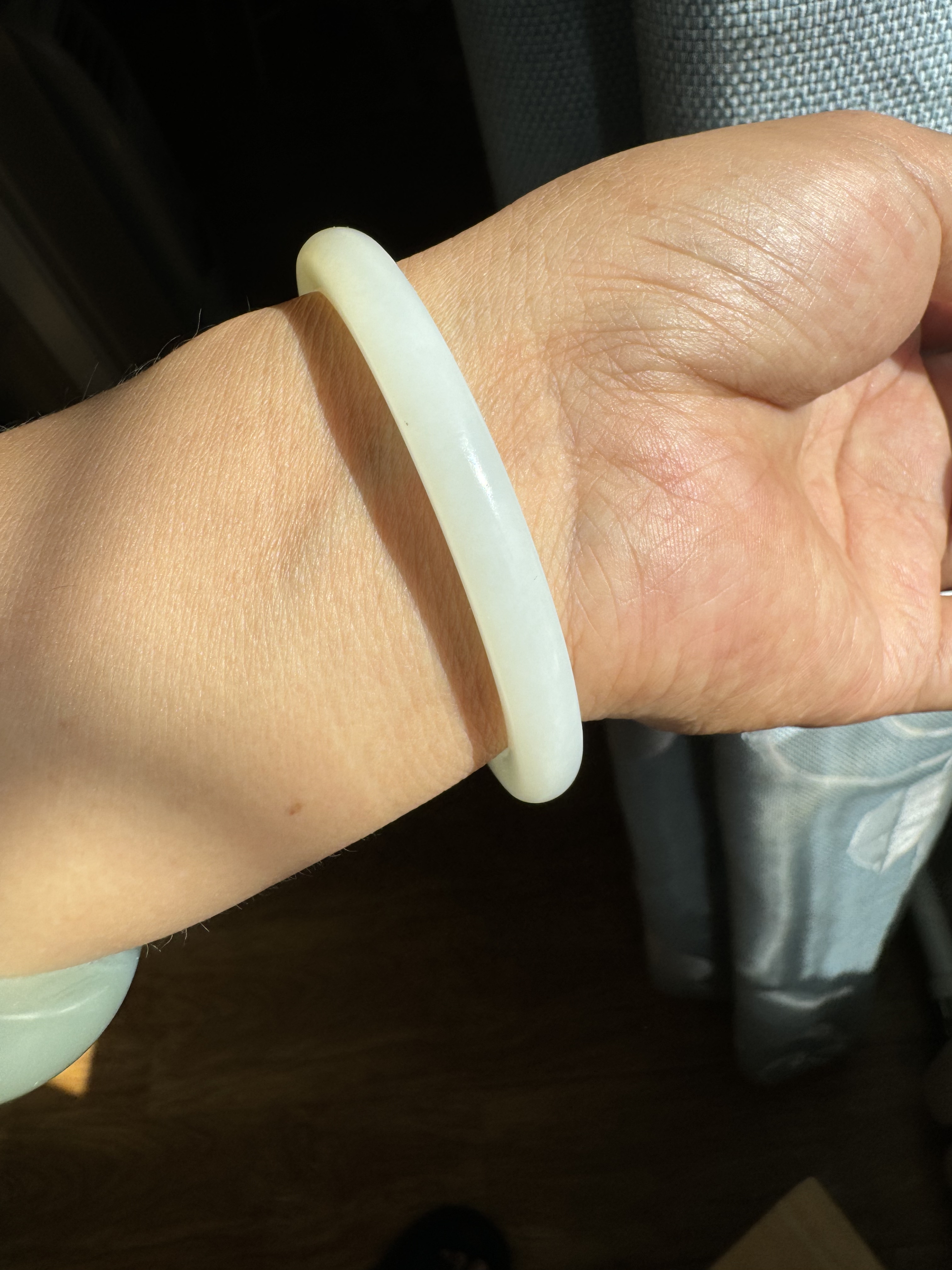 📚 和田玉羊脂白玉手镯58圈窄条无瑕疵美人镯半山半水秀气小细镯