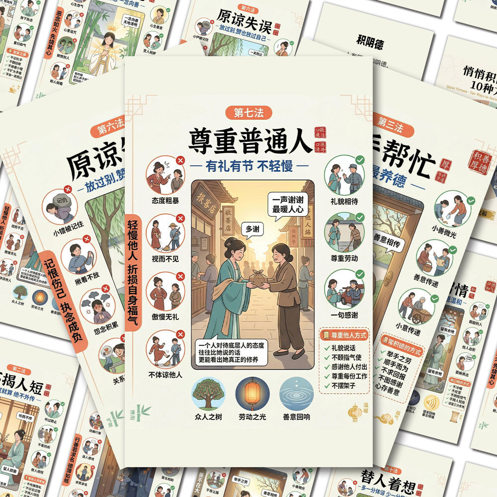 📚 36张悄悄积德的十种方法贴纸科普积德行善福气提升行为修心感悟