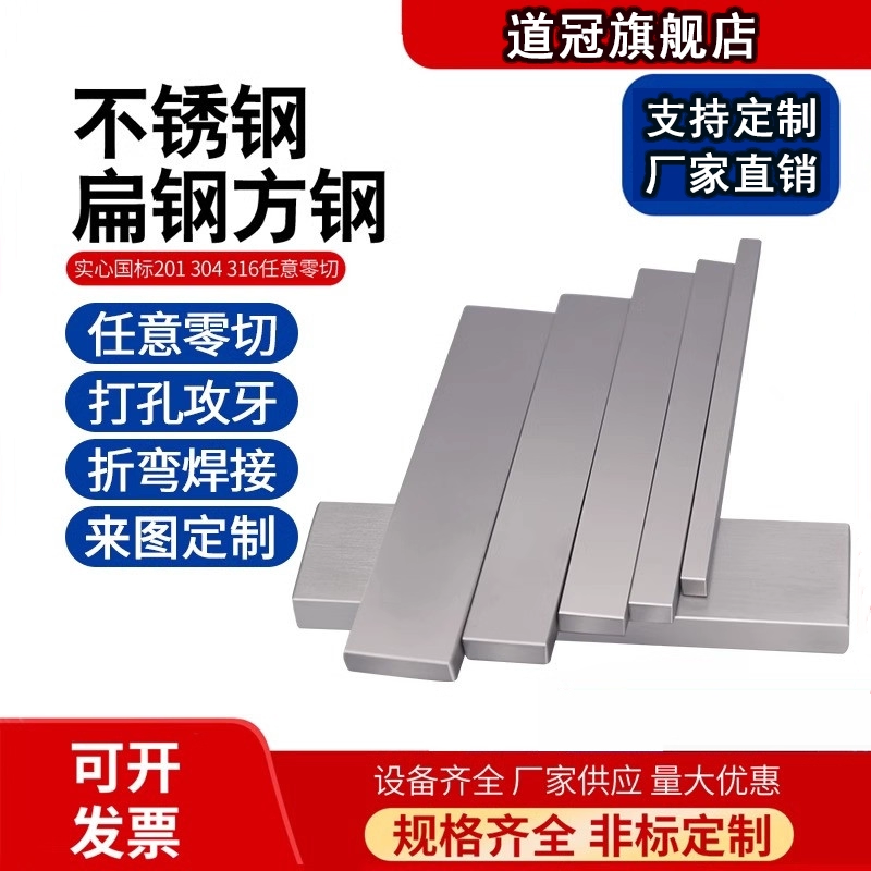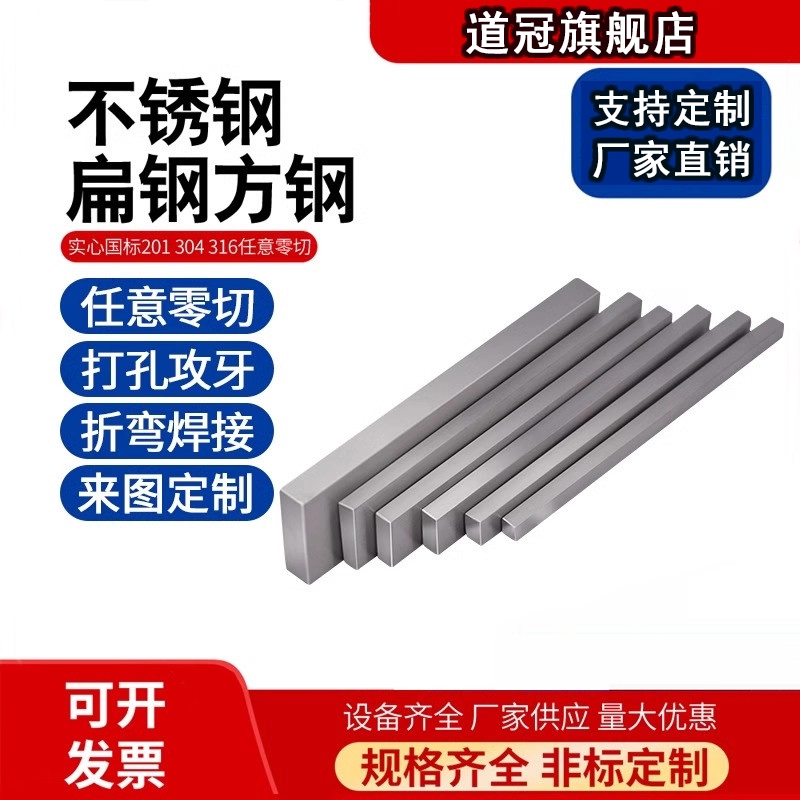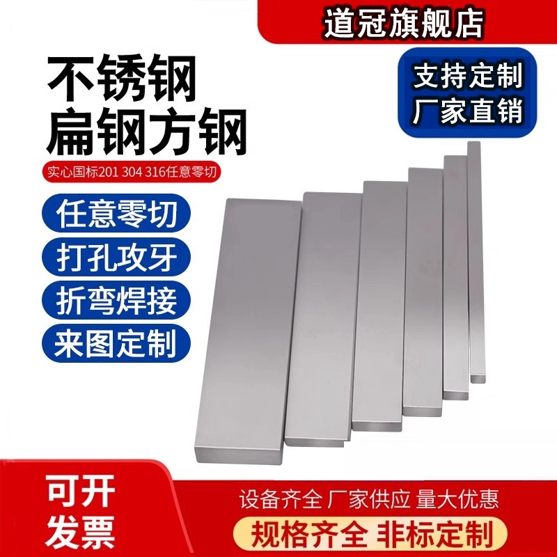 📚 304不锈钢扁条316L扁钢方条四方棒201实心方钢拉丝板打孔折弯定制