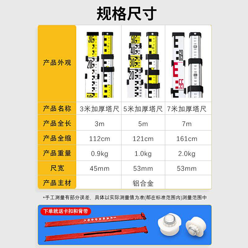 📚 塔尺5米7米3米铝合金伸缩加厚测量尺杆刻度量高度尺水平仪标尺