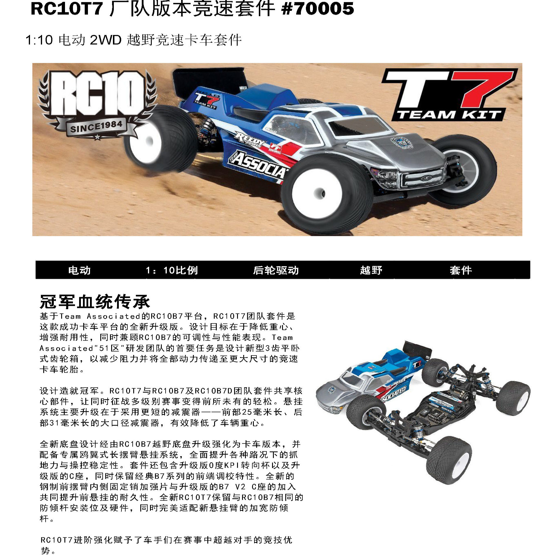 📚 AE Associated RC10SC7 T7 1/10后驱电动短卡车 竞速卡碳车架 KIT