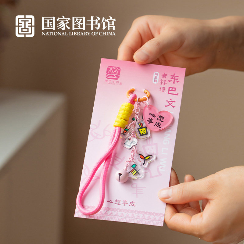 📚 国家图书馆丽江东巴文祝福语亚克力钥匙链手机挂饰可爱学生日礼物