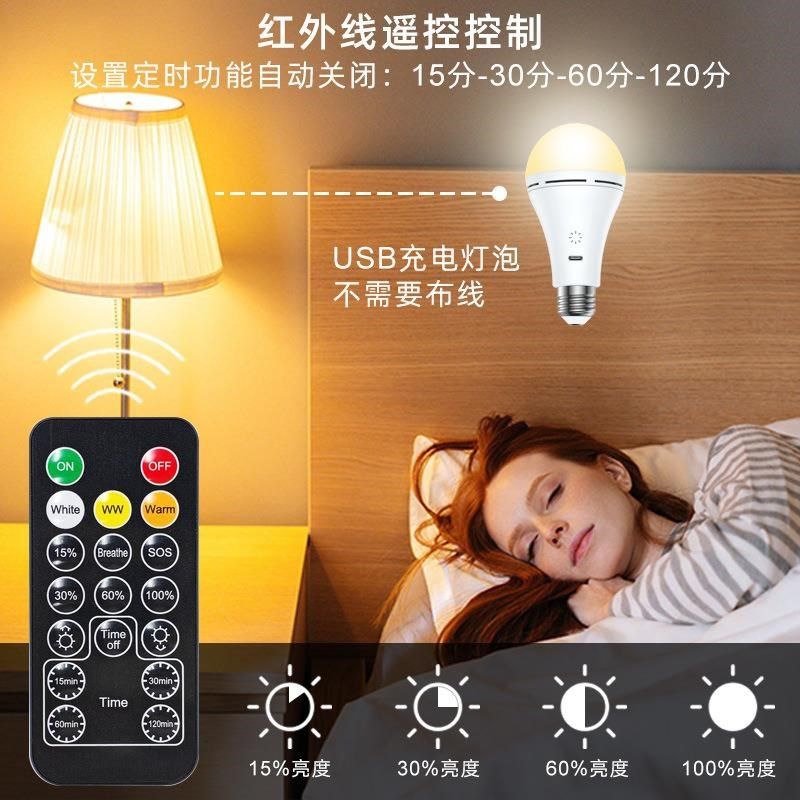📚 USB充电灯泡E26触摸控制球泡灯三色温遥控定时床头台灯壁灯应急灯