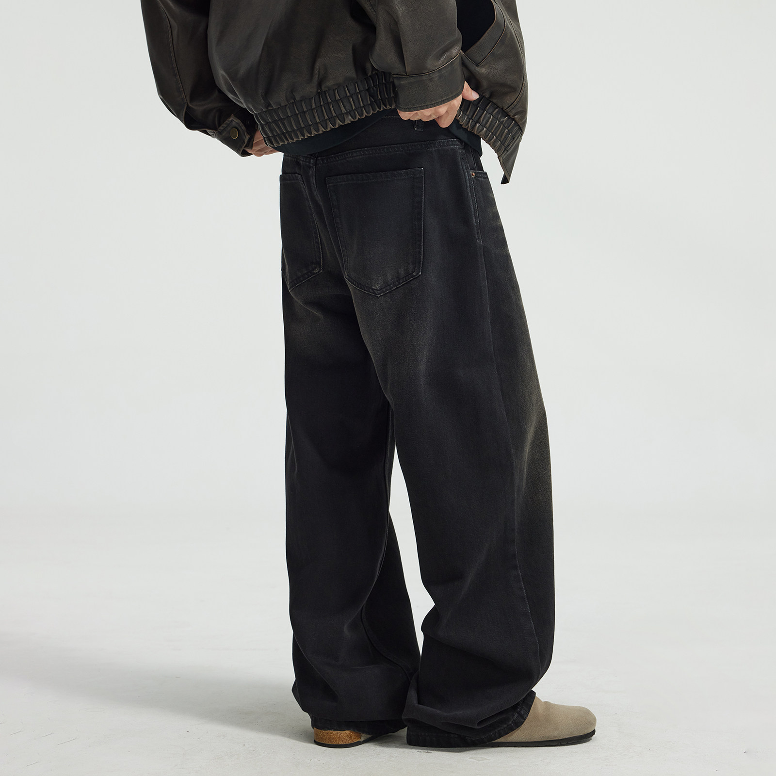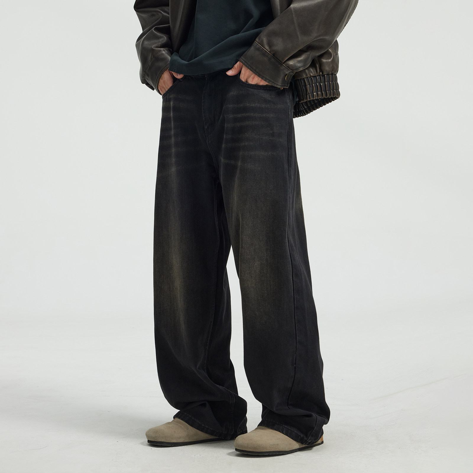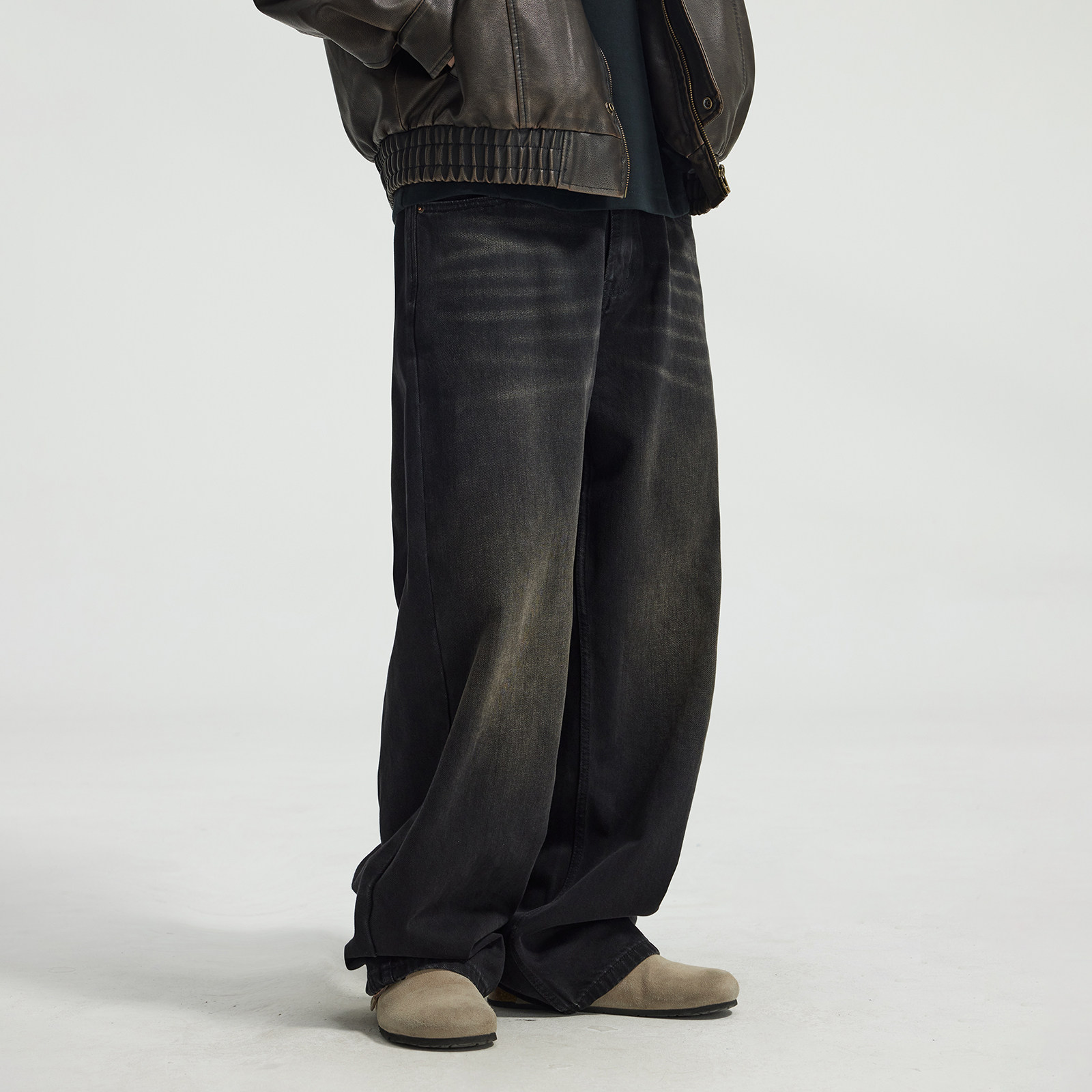 📚 高级纳米水洗黑色牛仔裤男士宽松秋冬新款美式高街潮牌直筒阔腿裤