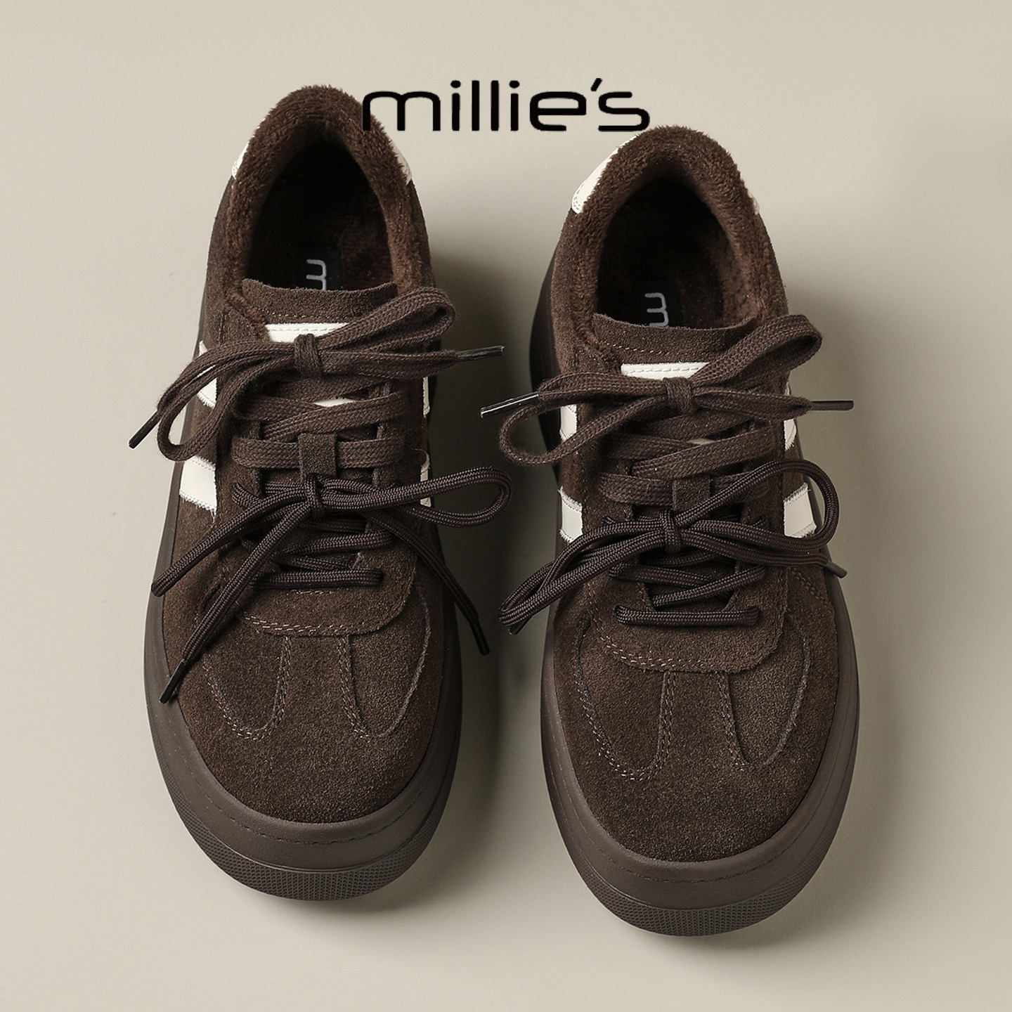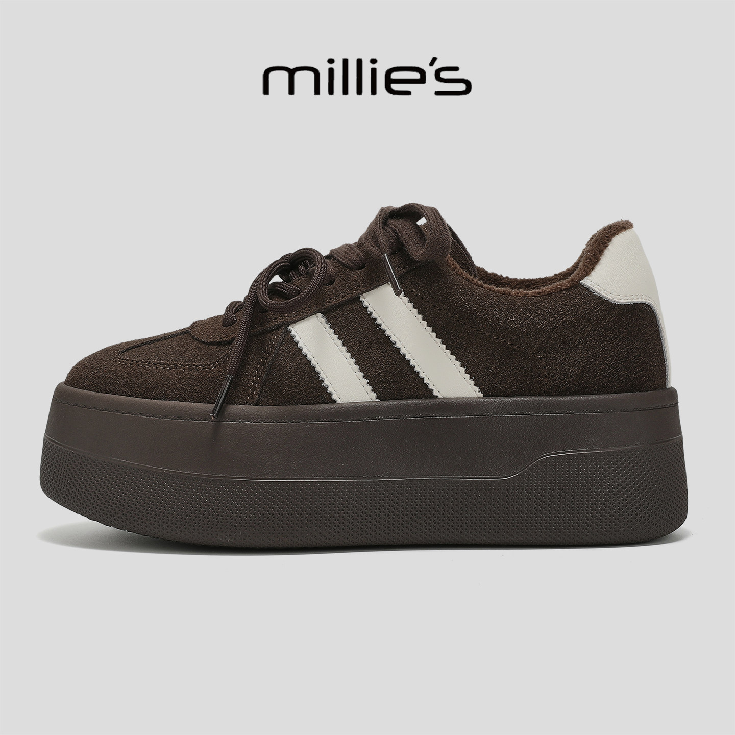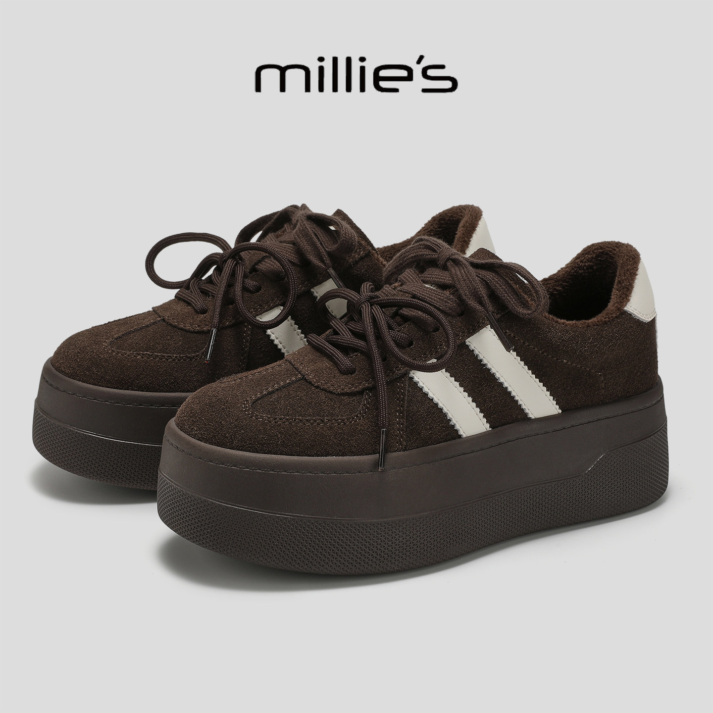 📚 MILLIE'S/妙丽2025新款女鞋厚底增高加绒双系带通勤休闲百搭板鞋