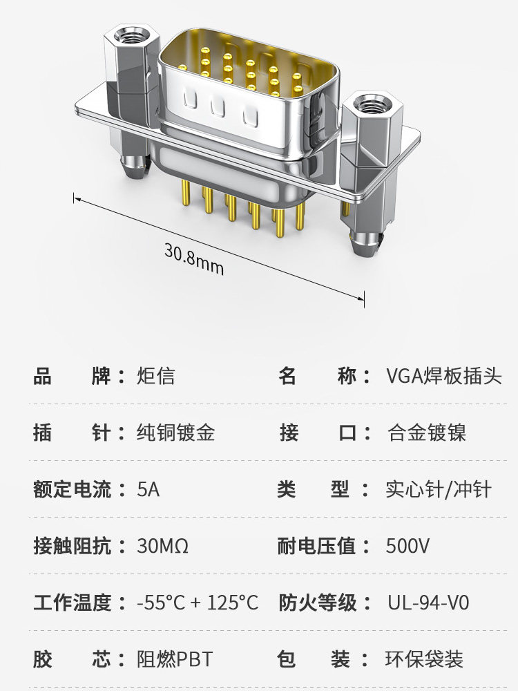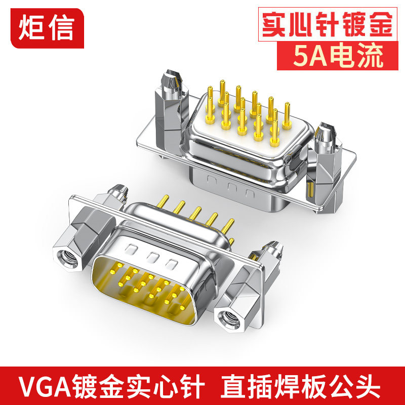 📚 工业VGA焊板公头HDR15母座90度弯脚三排15针接口DB15电路板插座金