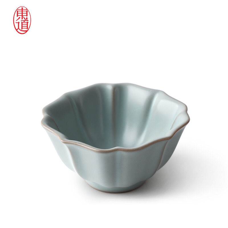 📚 东道汝窑功夫茶杯开可养泡茶杯茶具冰裂主人杯陶瓷茶杯聚宝杯天青