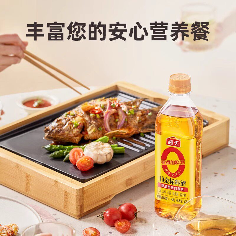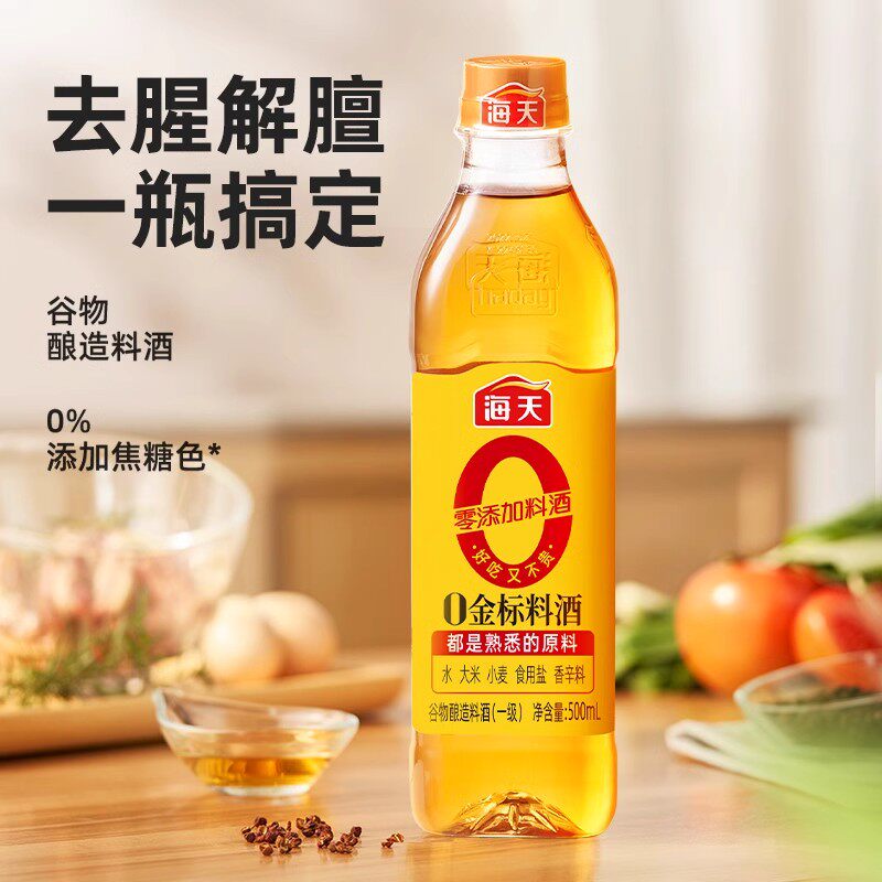 📚 海天0金标料酒500ml去腥膻提鲜增香味烹鱼煮肉家用零添加厨房调料