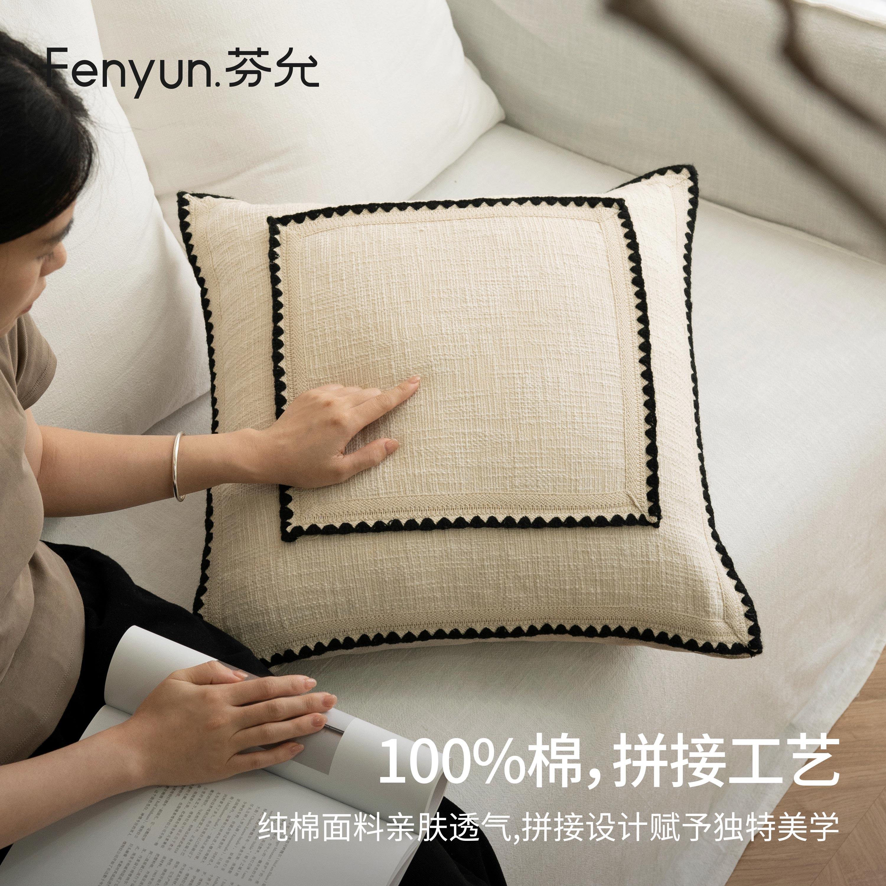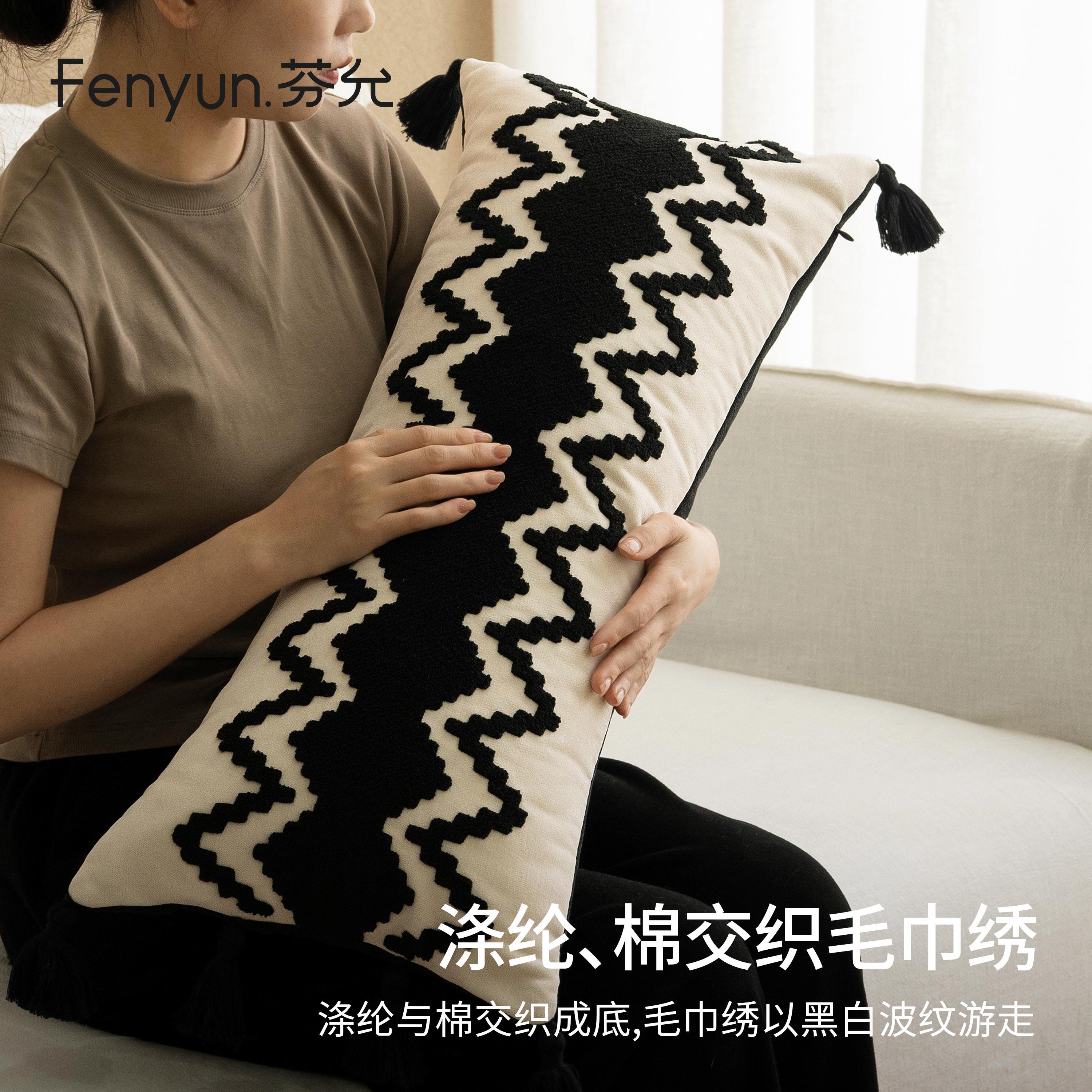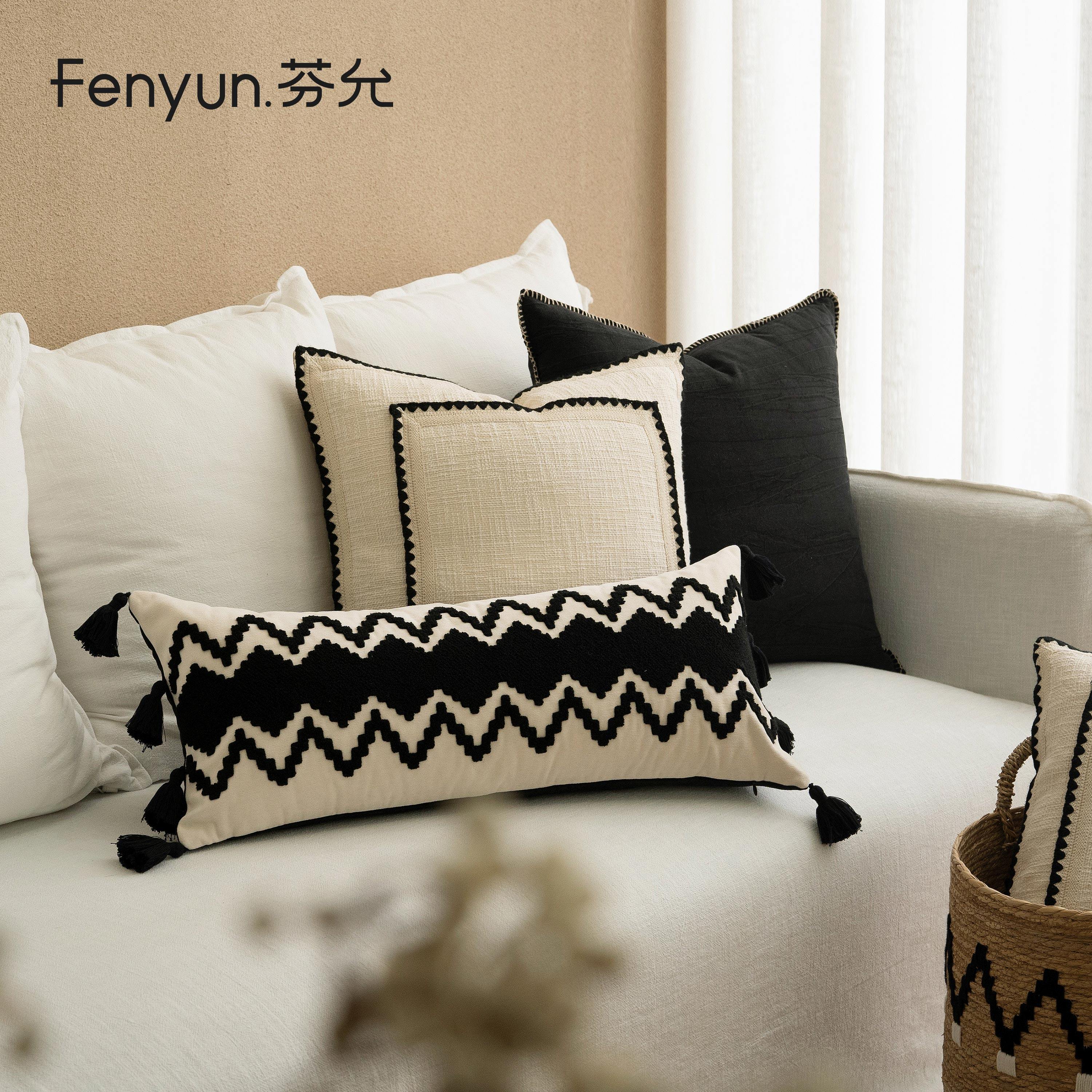 📚 芬允【中古风】黑白色抱枕毛巾绣沙发靠枕高级感别墅民宿床头靠垫