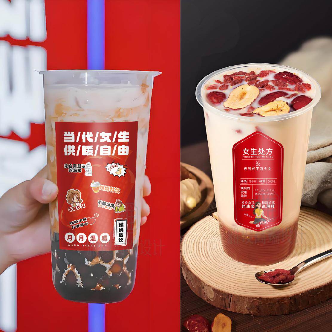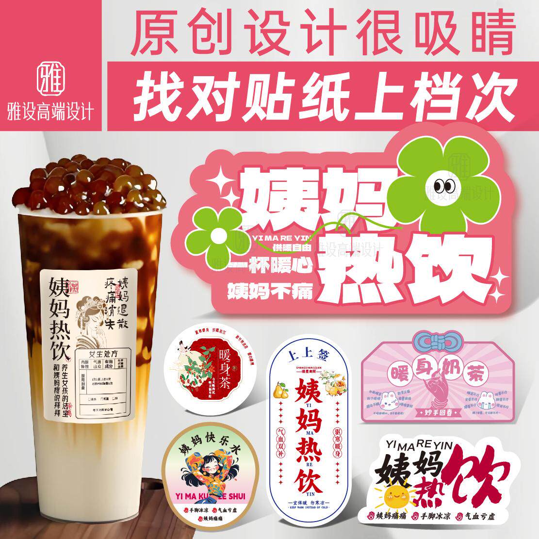 📚 姨妈热饮贴纸不凉少女生处方良药姜秋冬奶茶店杯贴不干胶标签定制