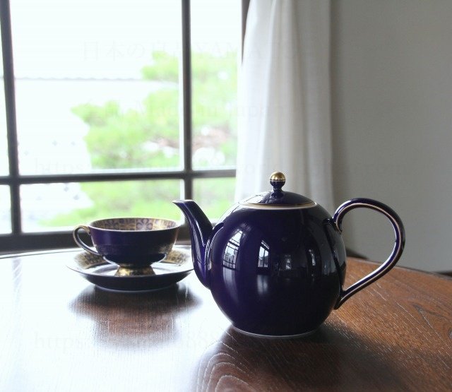 📚 日本香蘭社琉璃蓝色描金圆形茶壶水具高端精美礼品优惠现货