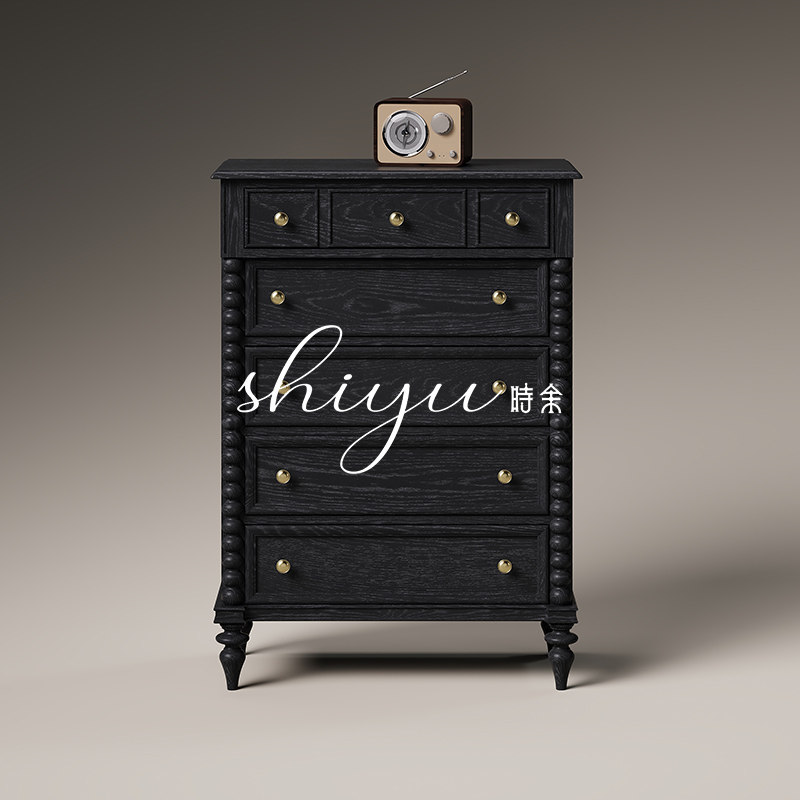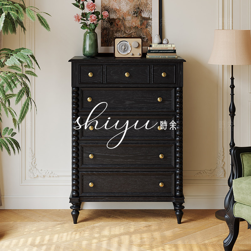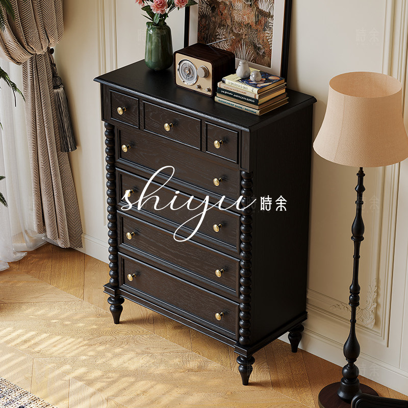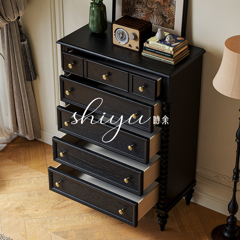 📚 时余格雷斯五斗柜中古风黑色美式全实木卧室法式复古沙发边柜高款