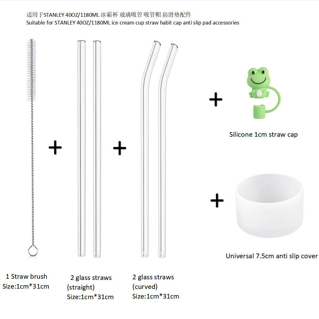 📚 适用STANLEY20/30/40OZ 保温杯耐热透明环保可重复玻璃弯曲吸管